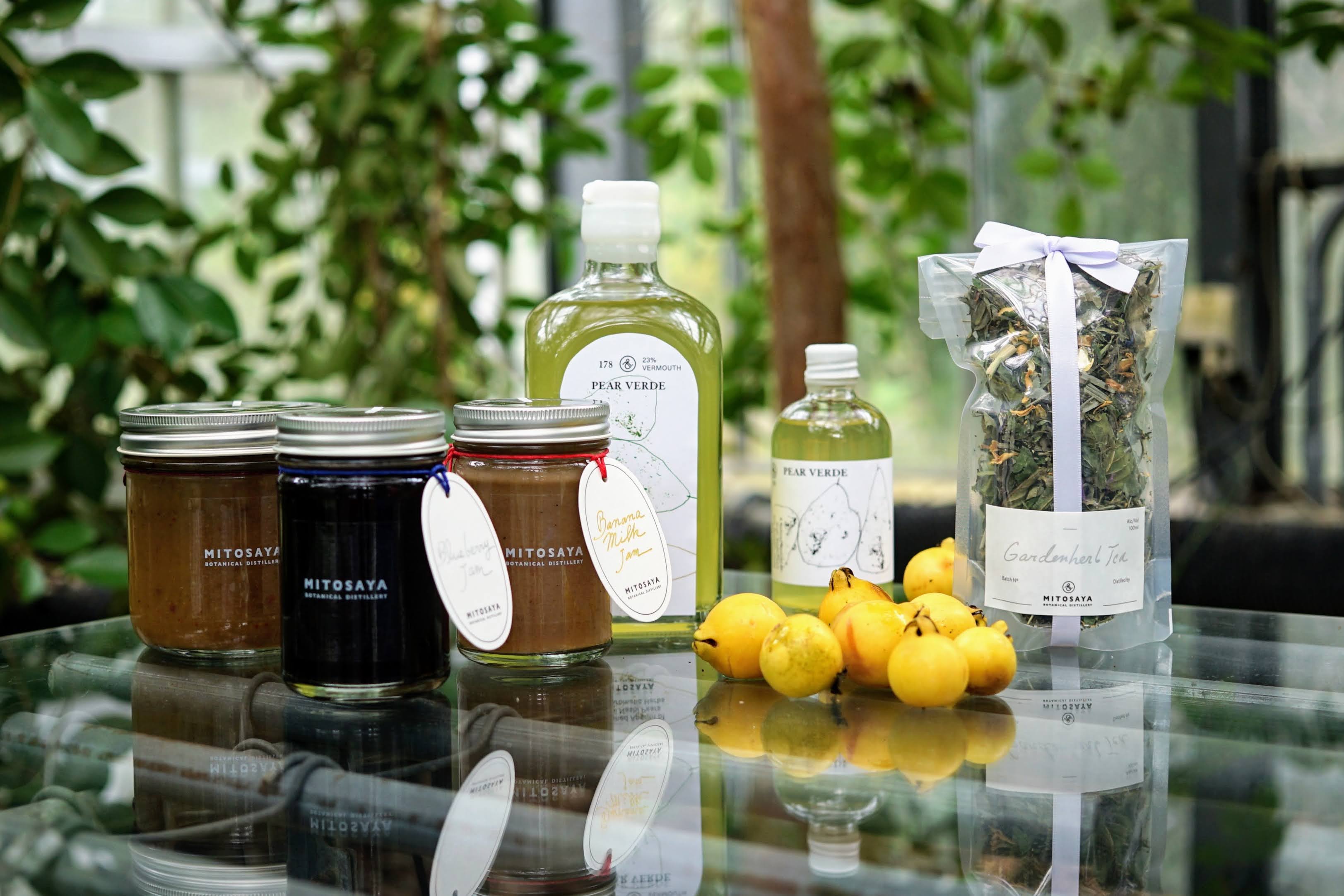 千葉県産の梨と自家製ハーブが織りなす、ベルモットのような緑のリキュール「PEAR VERDE」、mitosayaの庭で育ったハーブをたっぷり使った「庭のハーブティー」など、多彩なラインナップをご用意しました。