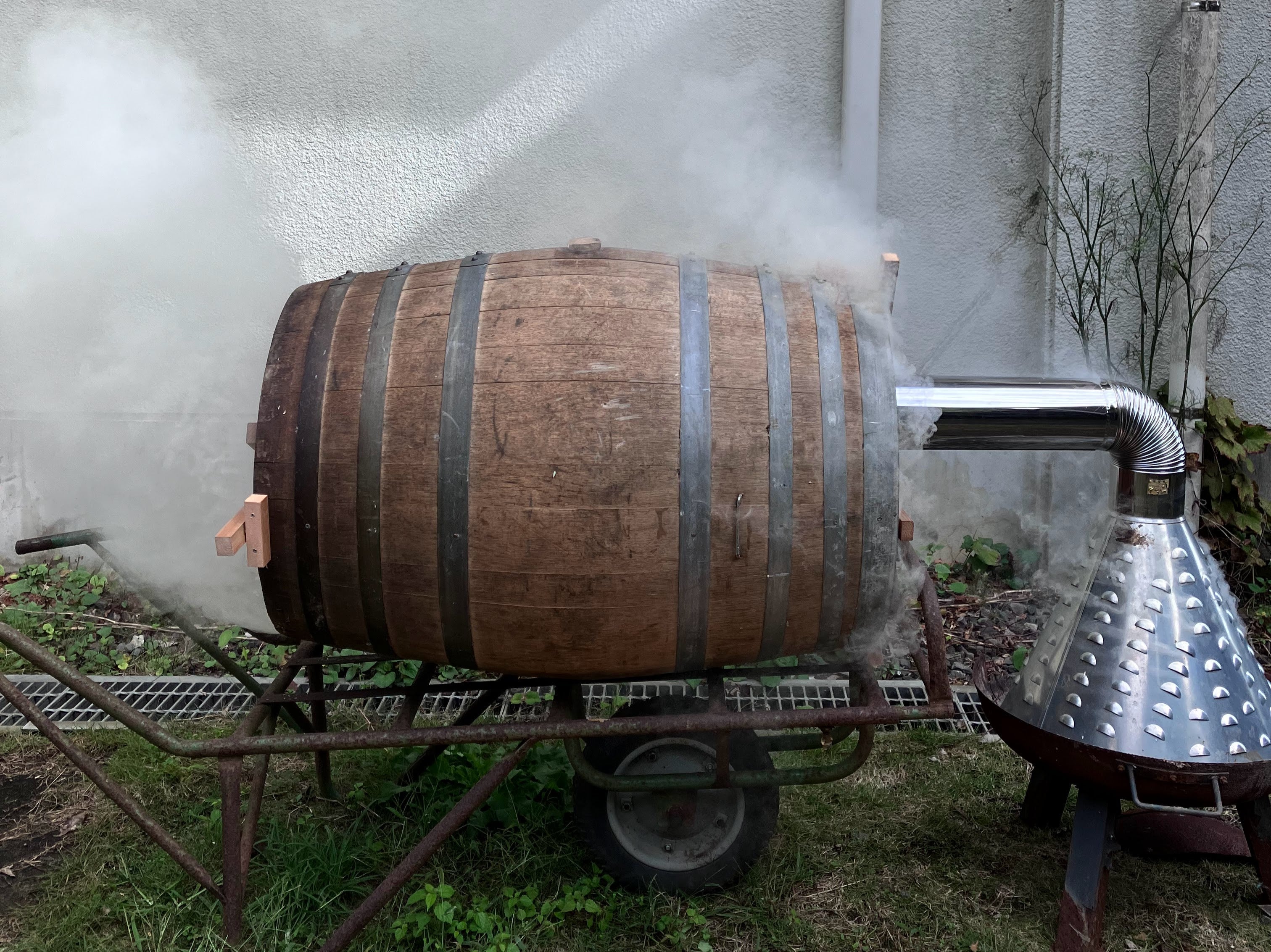 - 蒸留器での糖化、素焼きの陶器タンクでの発酵