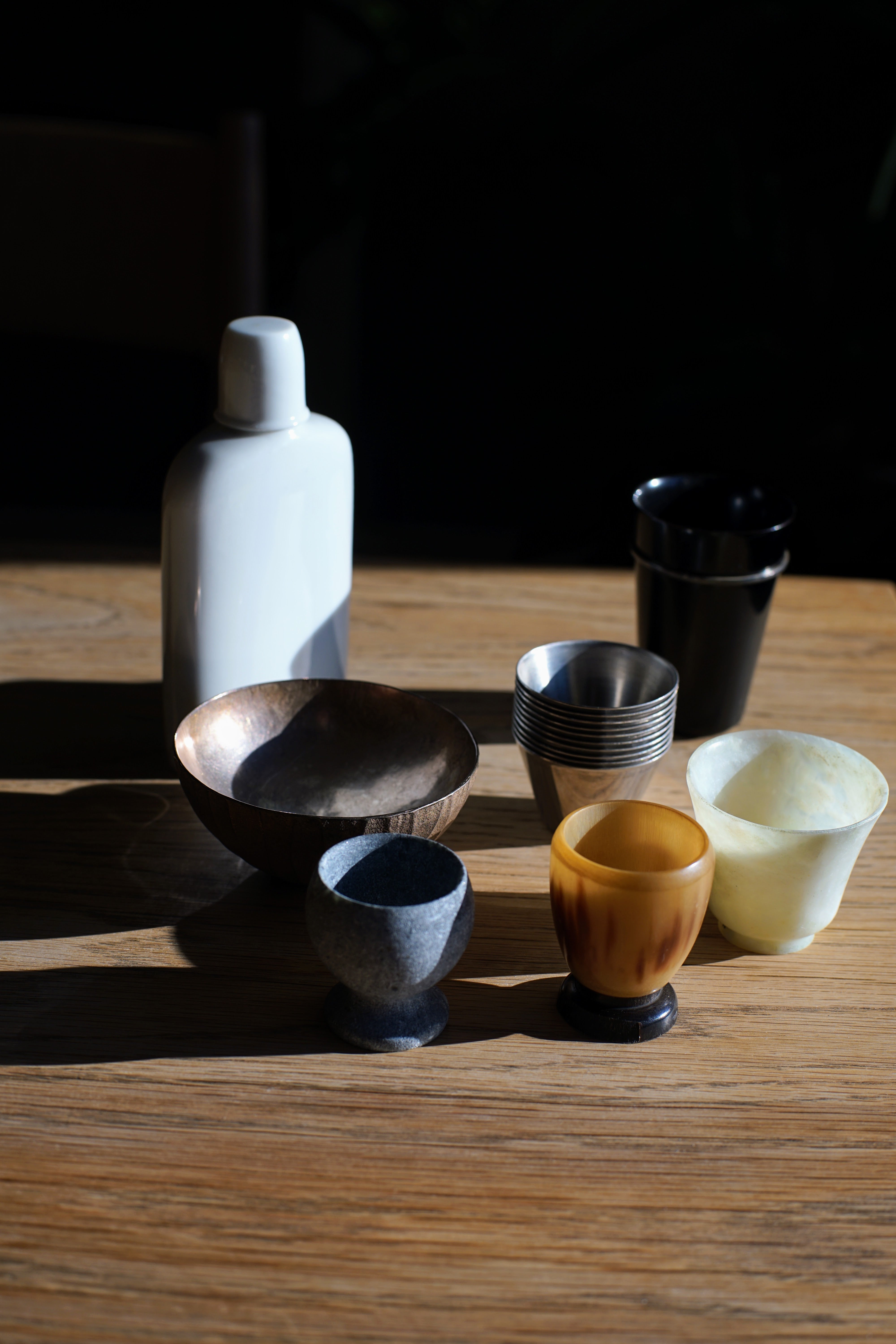 ガラスのテイスティンググラス、陶器や磁気の器ももちろんいいけれど、気づけば集まっていた、さまざまな素材の容れ物をご紹介します。