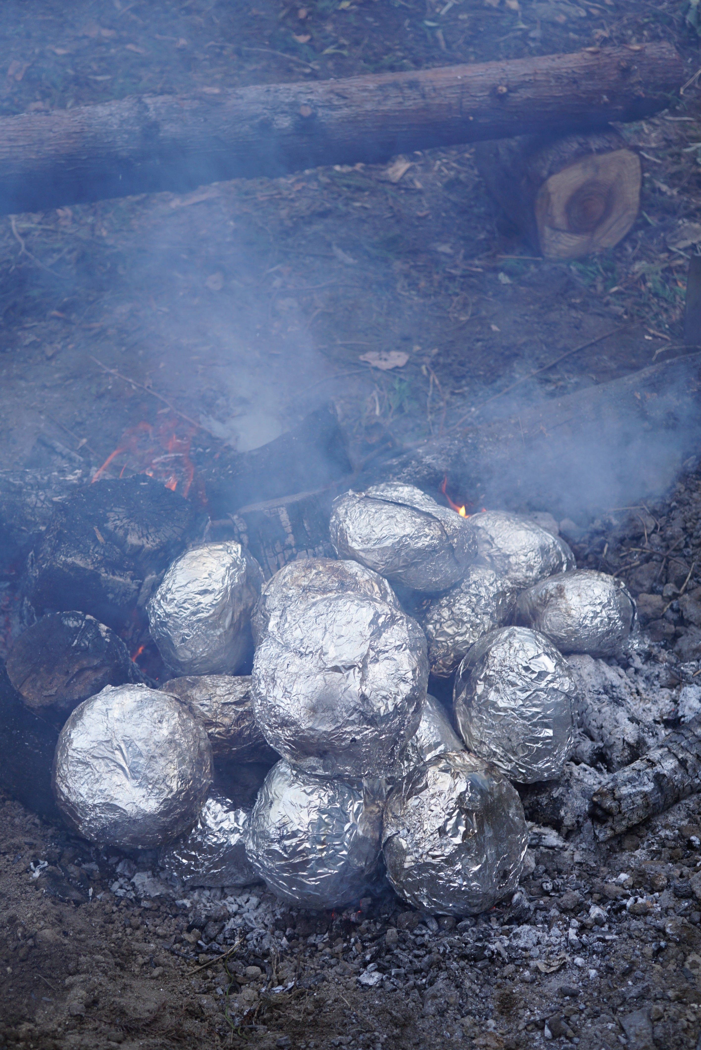 I wanted to soften and sweeten a large amount of hard pumpkins at once. So I came up with the idea of steaming them over a bonfire. I steamed the pumpkins slowly over the embers, just like making roasted sweet potatoes.