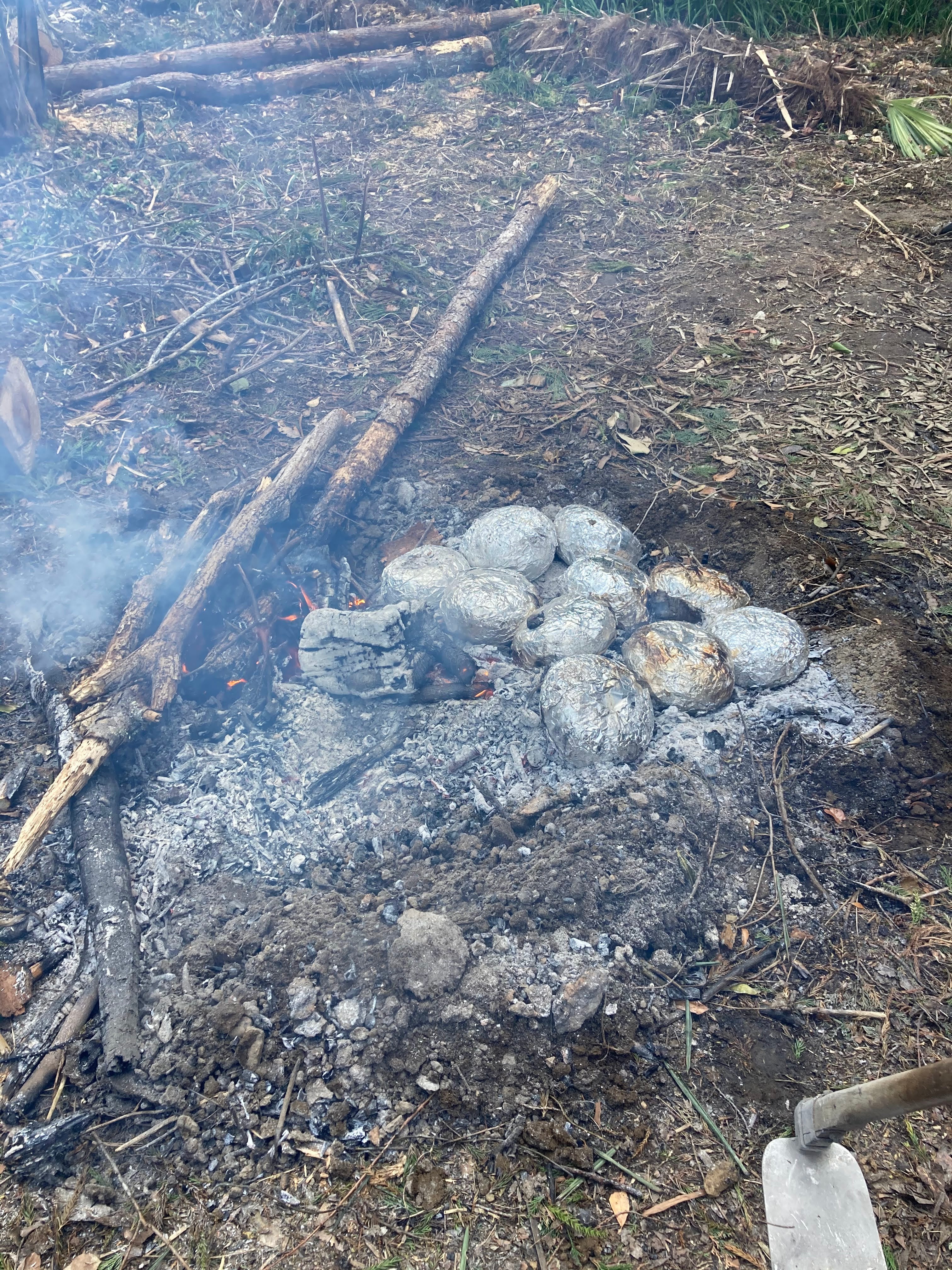 We wanted to soften and sweeten the hard pumpkin all at once. We came up with the idea of roasting them over an open fire. We would steam the pumpkins slowly over a roasting fire, just as you would roast a sweet potato.