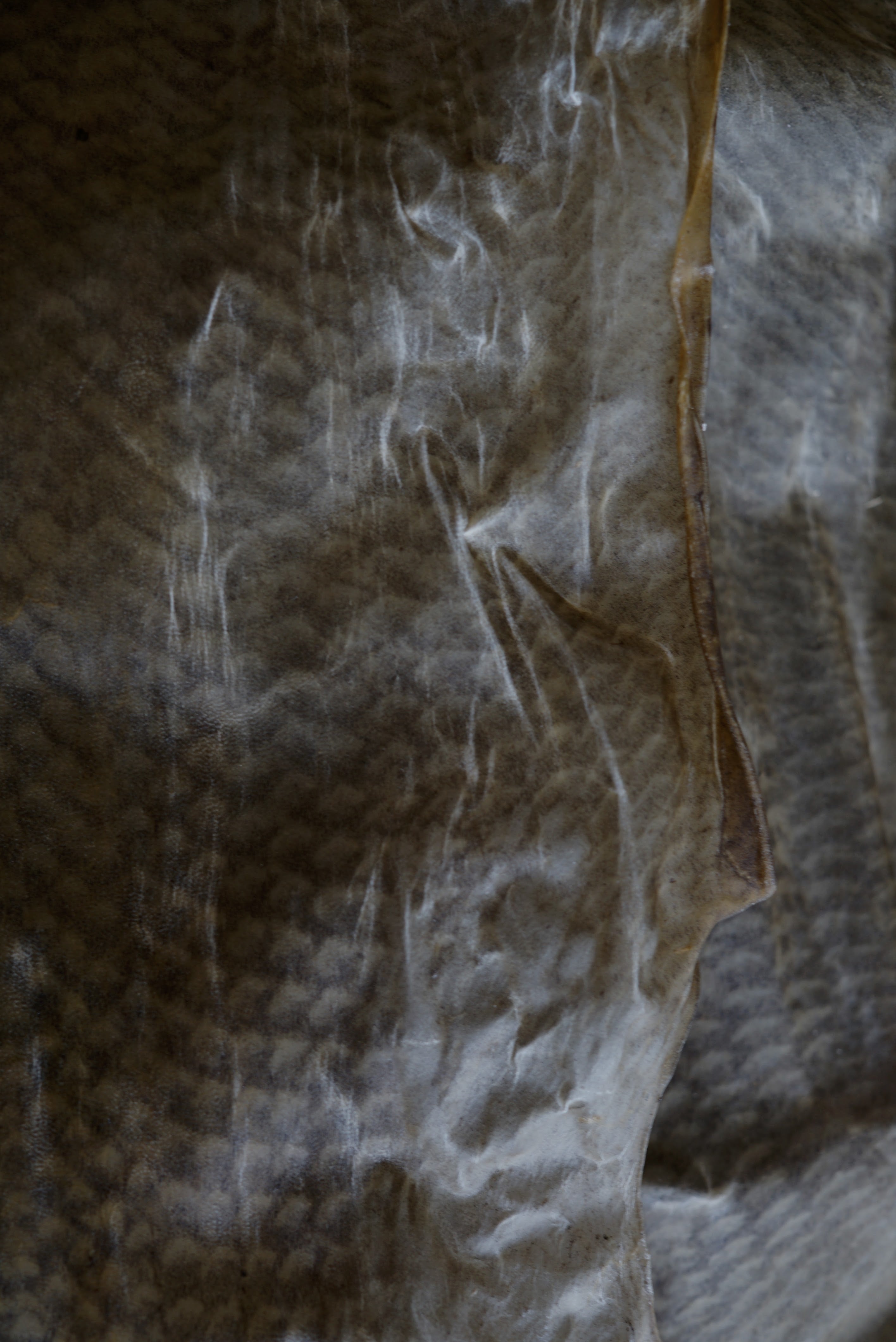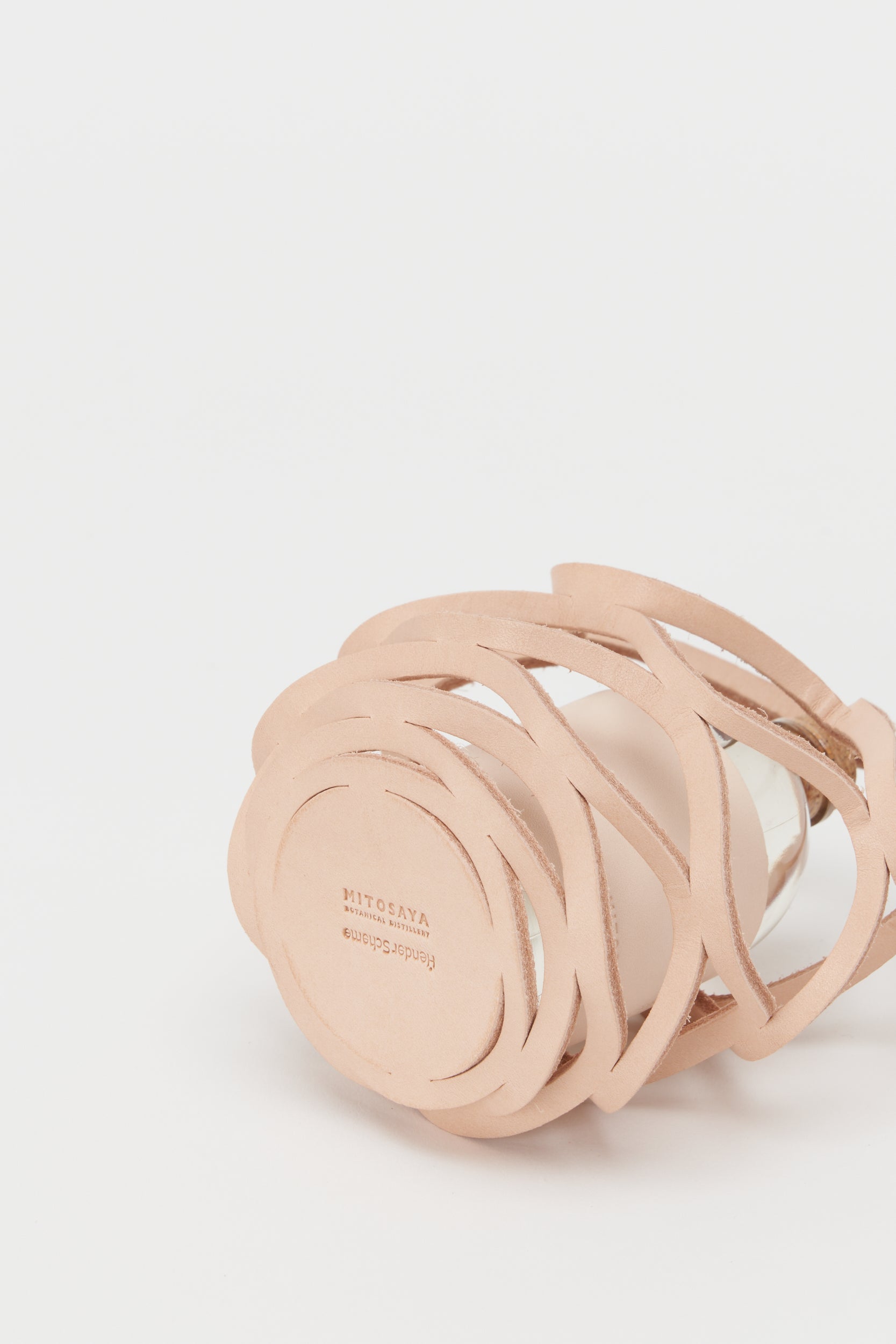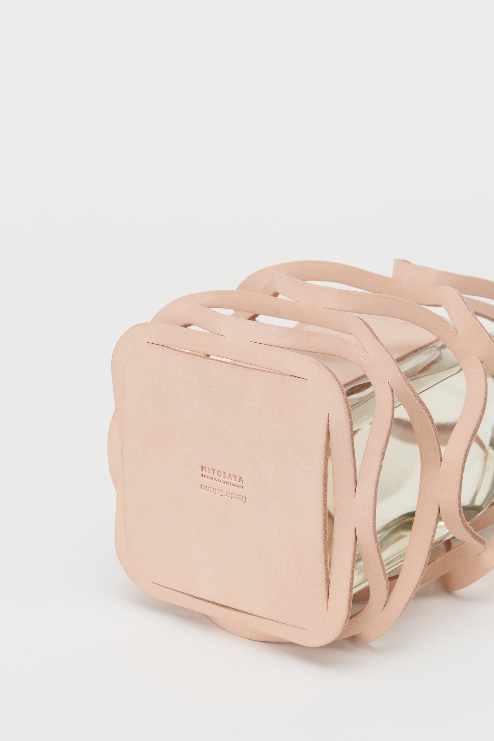 Hender Scheme and mitosaya have been searching for a leather that is safe to put in the mouth. The raw skin is made by manually removing all impurities from the deer skin without using tannin or chemicals that are normally used in the tanning process.