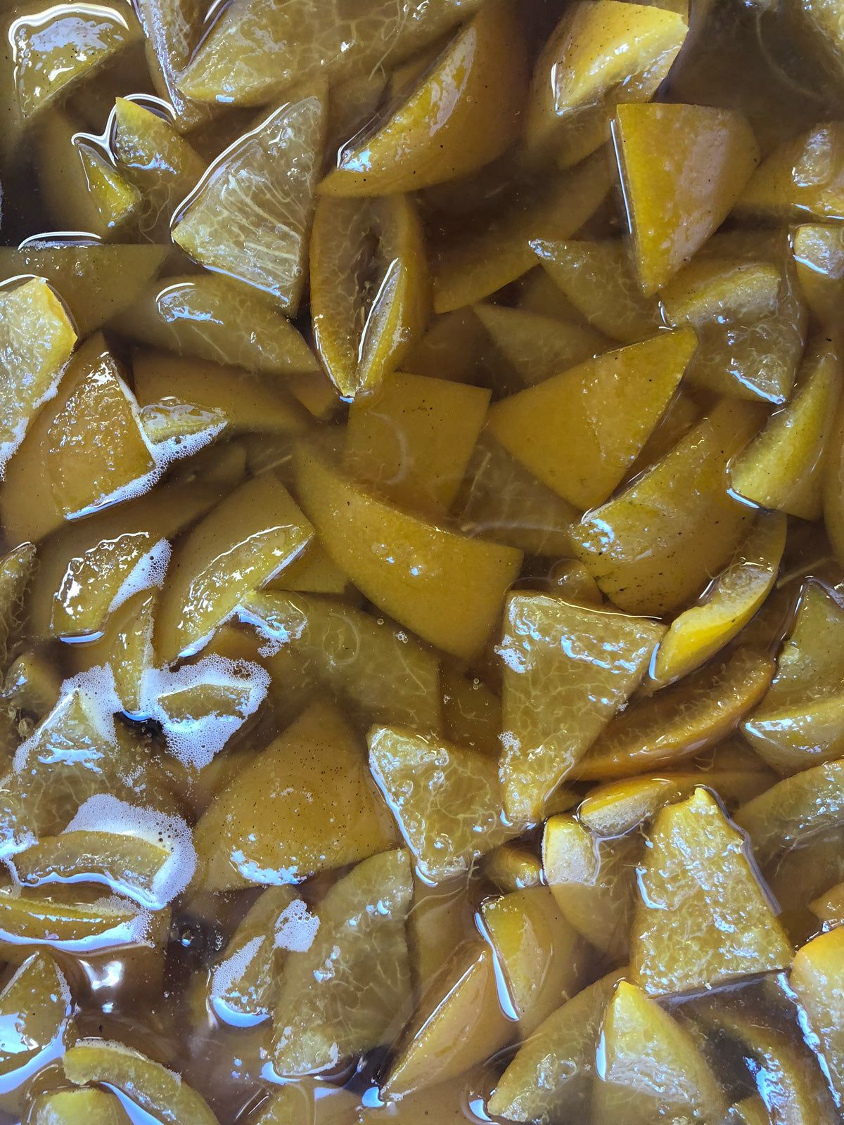 We've harvested a bountiful amount of summer oranges from our garden. Through collaborative efforts with friends and staff who kindly lent a hand, we managed to peel the fruits, extract the juice, blanch, and then dry them. The process of making citrus confections involves many unseen and modest tasks. The glossy peels are a testament to this diligent work.