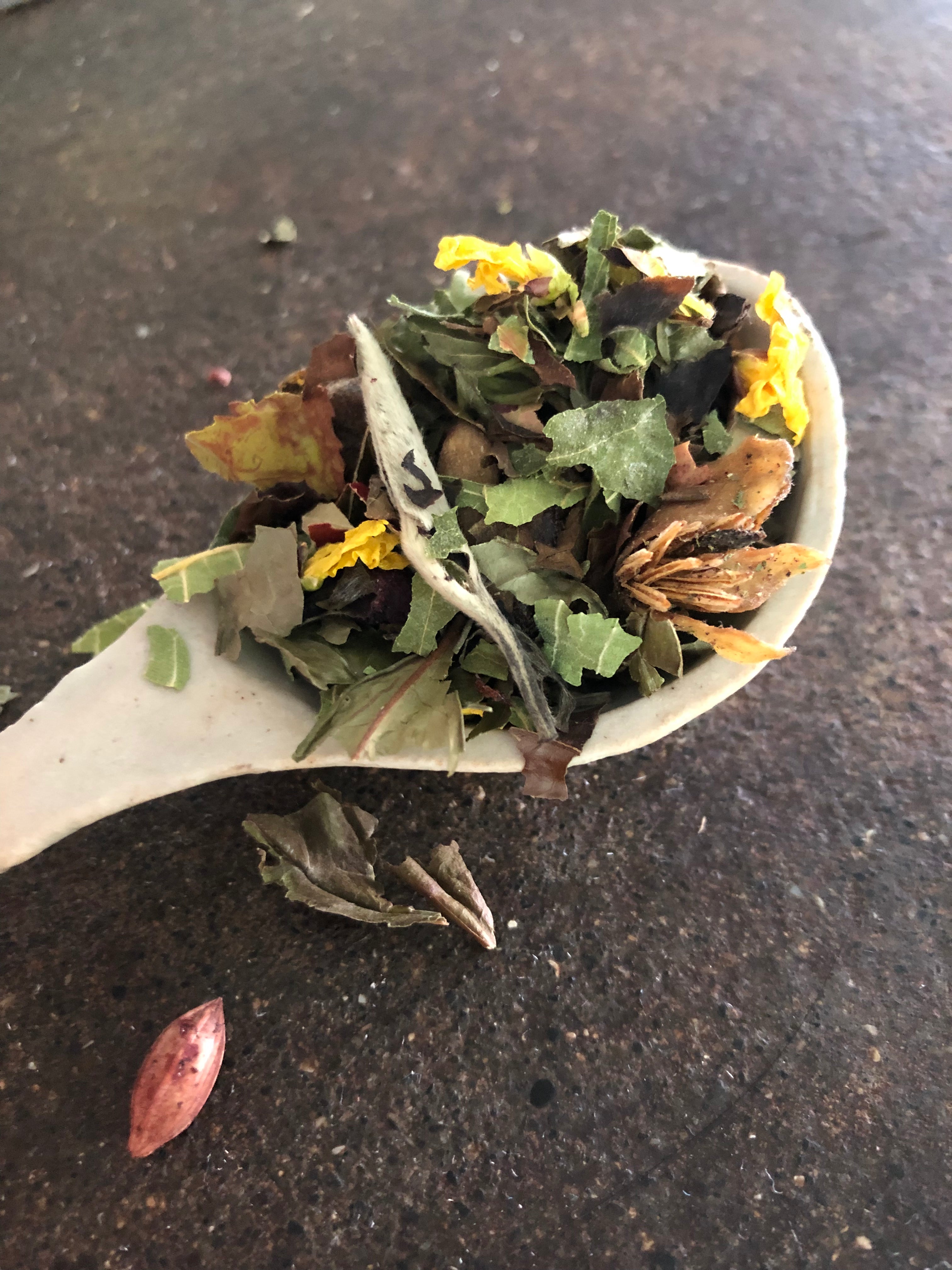 This tea is a blend of herbs and flowers with a fruity fragrance, inspired by the fig leaves.