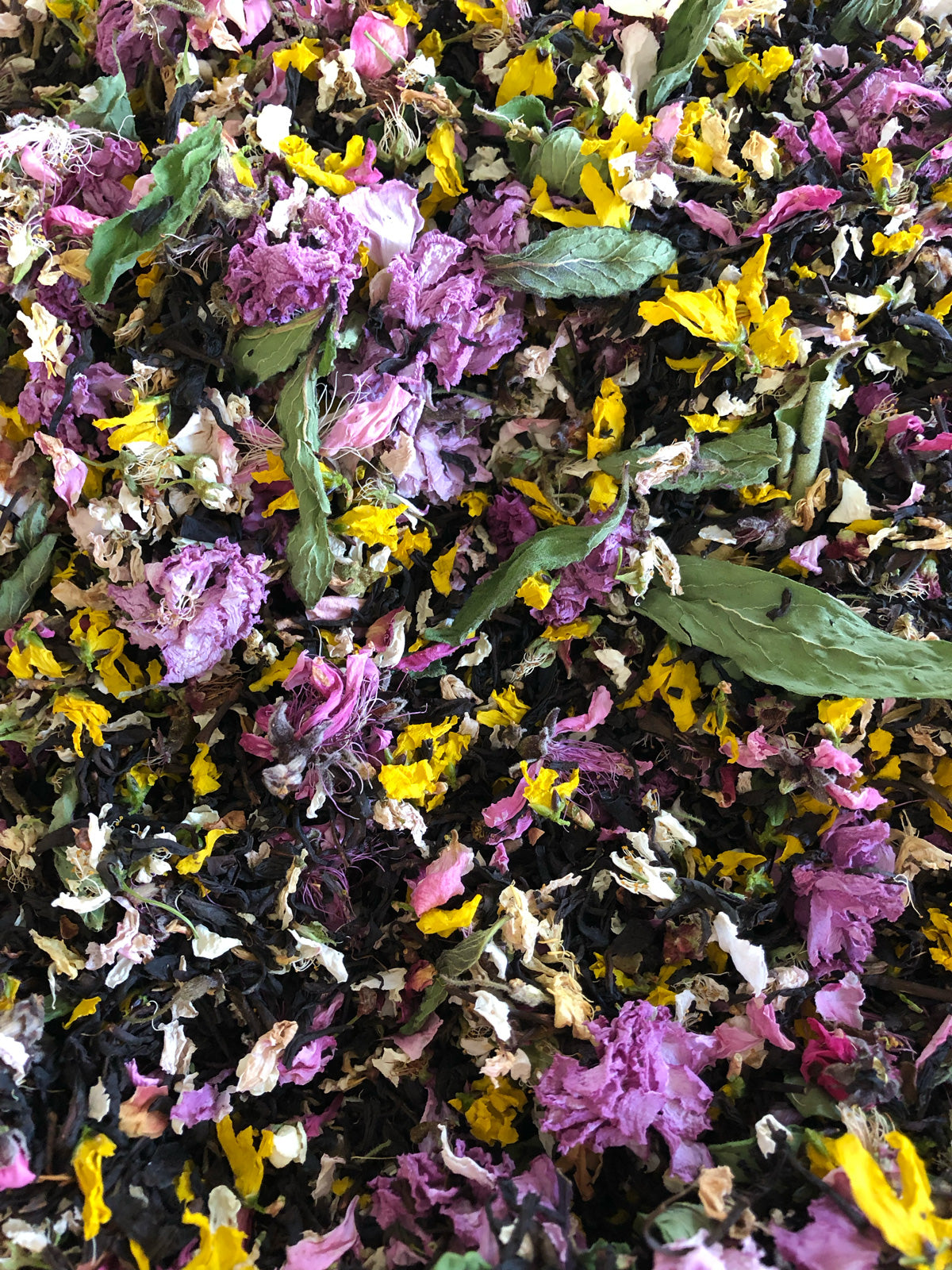 One of the most enjoyable aspects of tea making is botanical tea, which is a mixture of so many seasonal flowers. These flowers are picked by hand. The work of picking and carefully gathering each flower, day after day, is It is a steady work, but I always look forward to seeing them turned into this gorgeous tea.