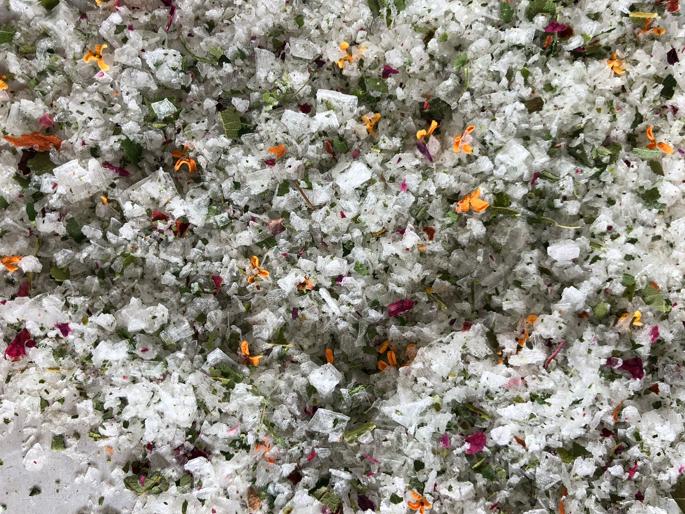Ingredients: Maldon salt (from France), marjoram, bay leaf, fig leaves, lemon myrtle, camellia flower, osmanthus