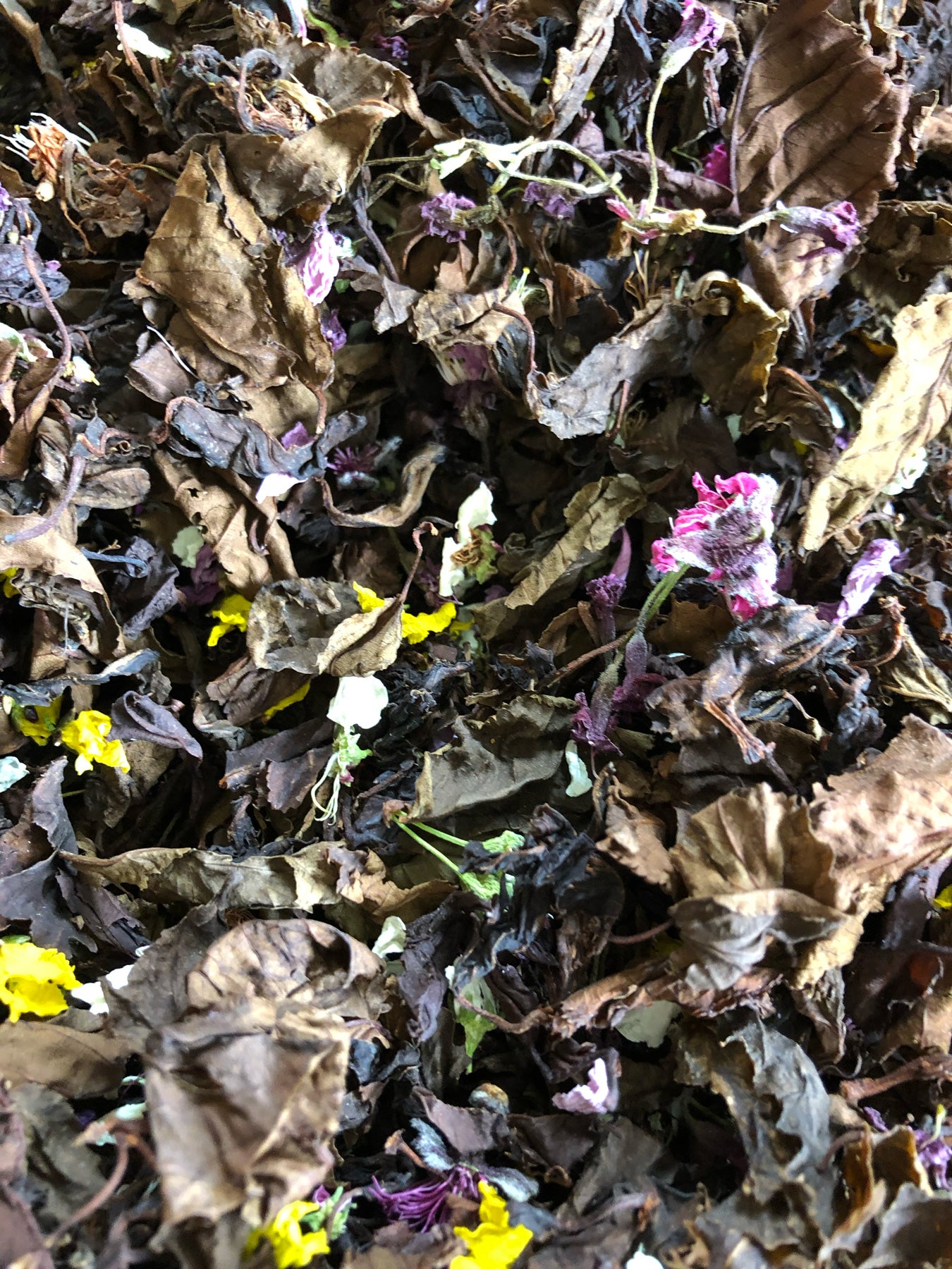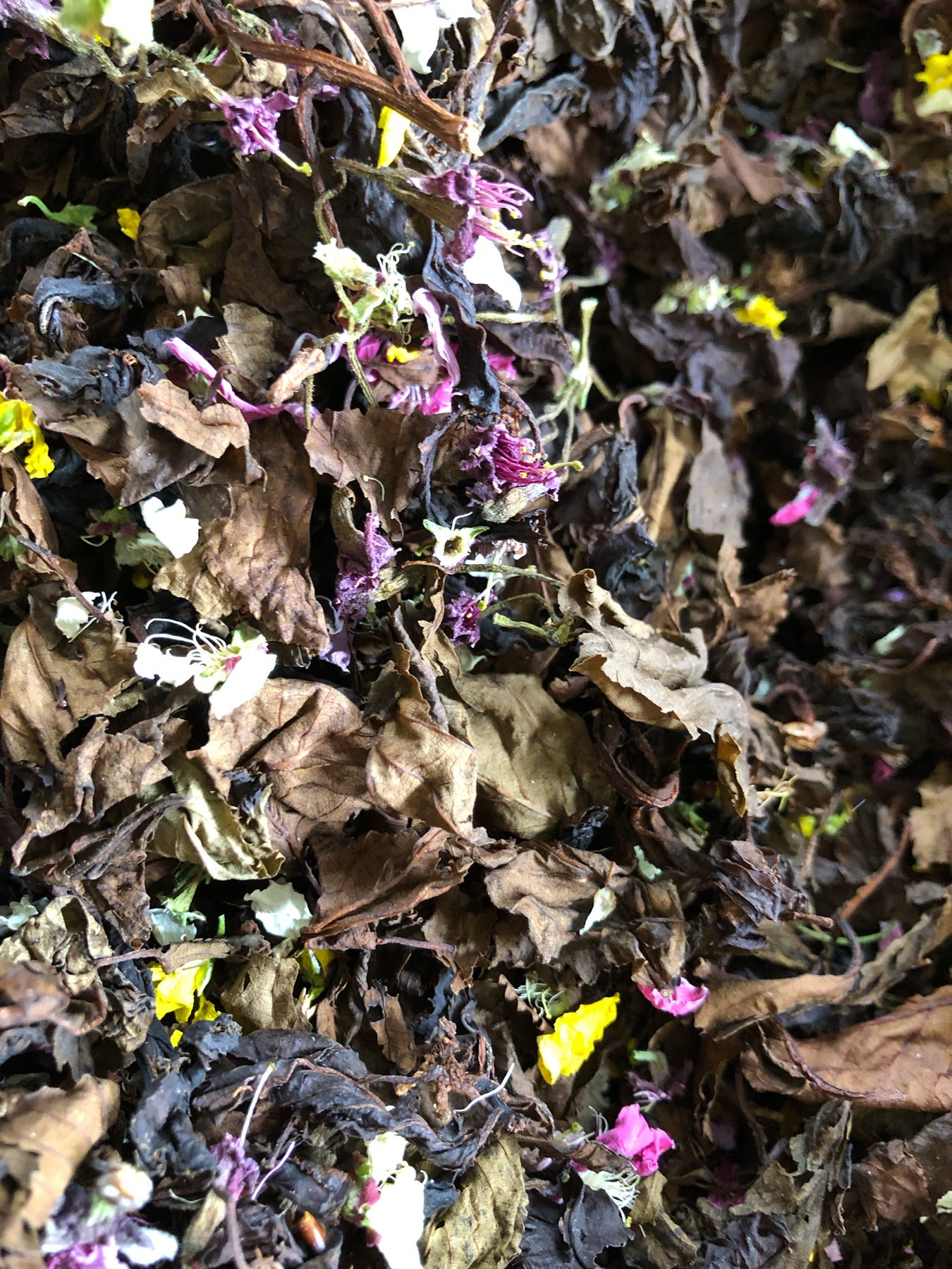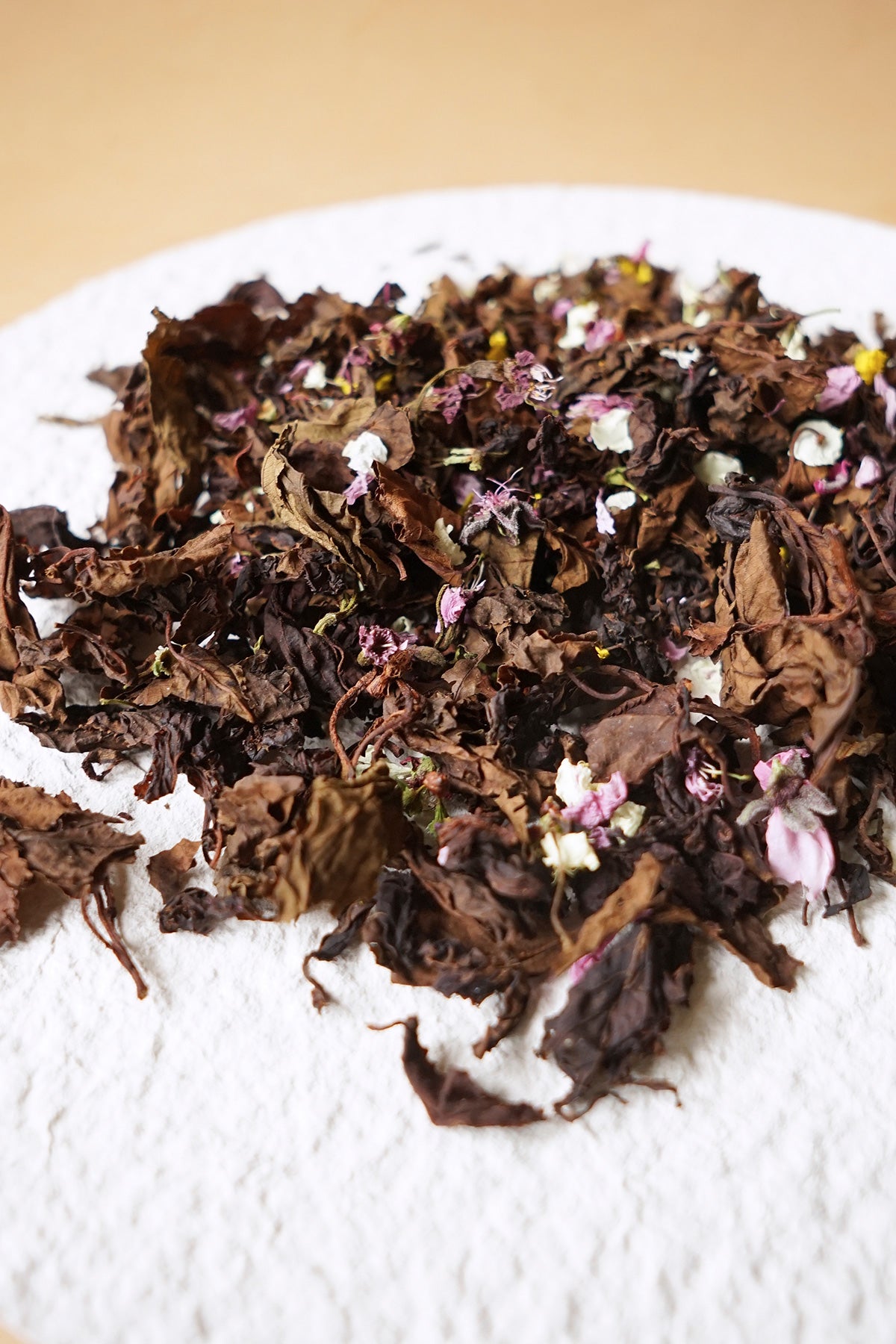Mitosaya's original fermented tea is sprinkled with spring flowers picked from the garden each season, giving it an even more floral aroma.
