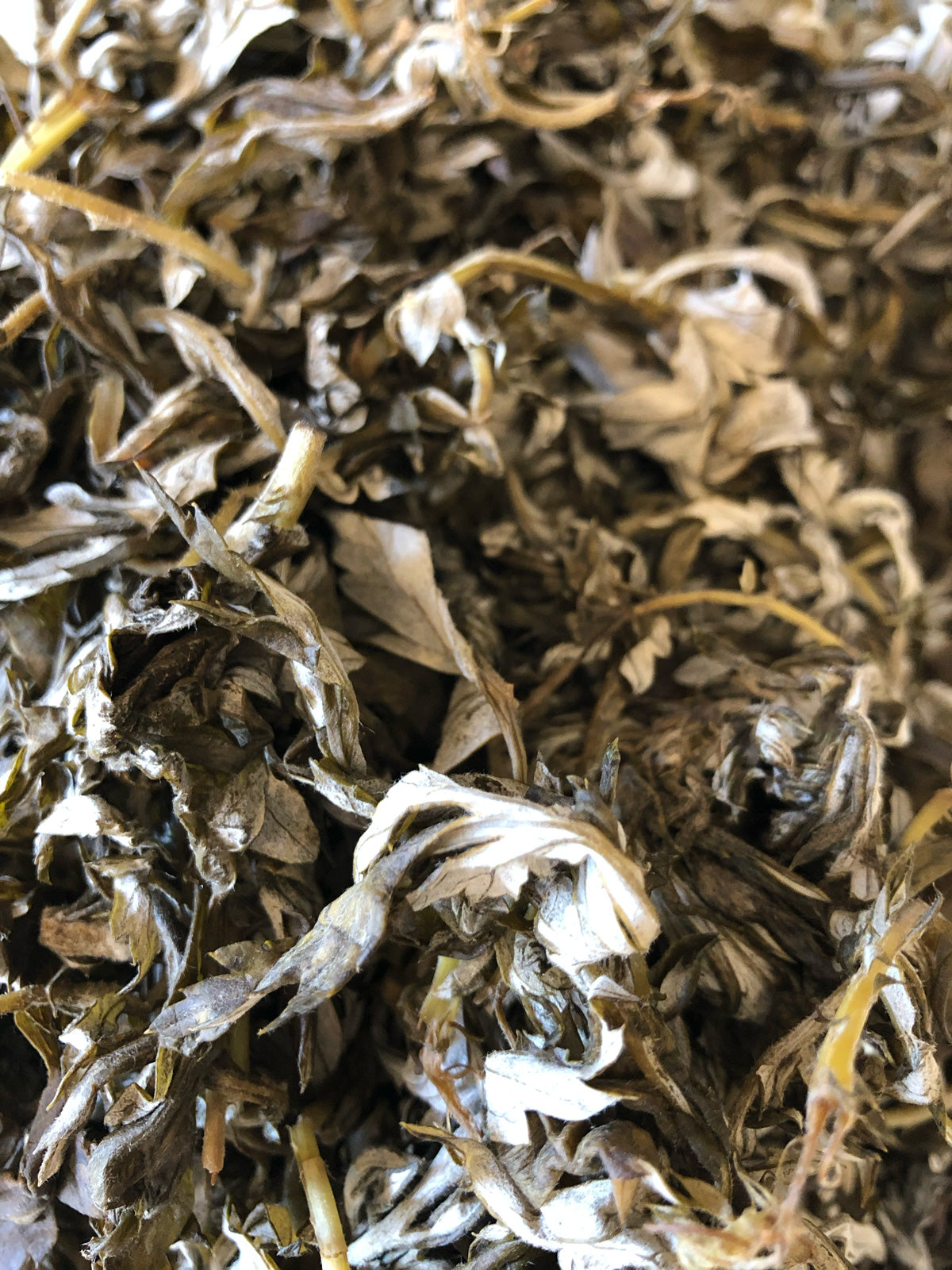 We've harvested young leaves from the mugwort growing in the "Absinthe Field" of the garden and made fermented tea. Mugwort is a representative of wild herb tea and smells lovely as it is, but by adding oxidation processing, its sweetness and complexity increase further.