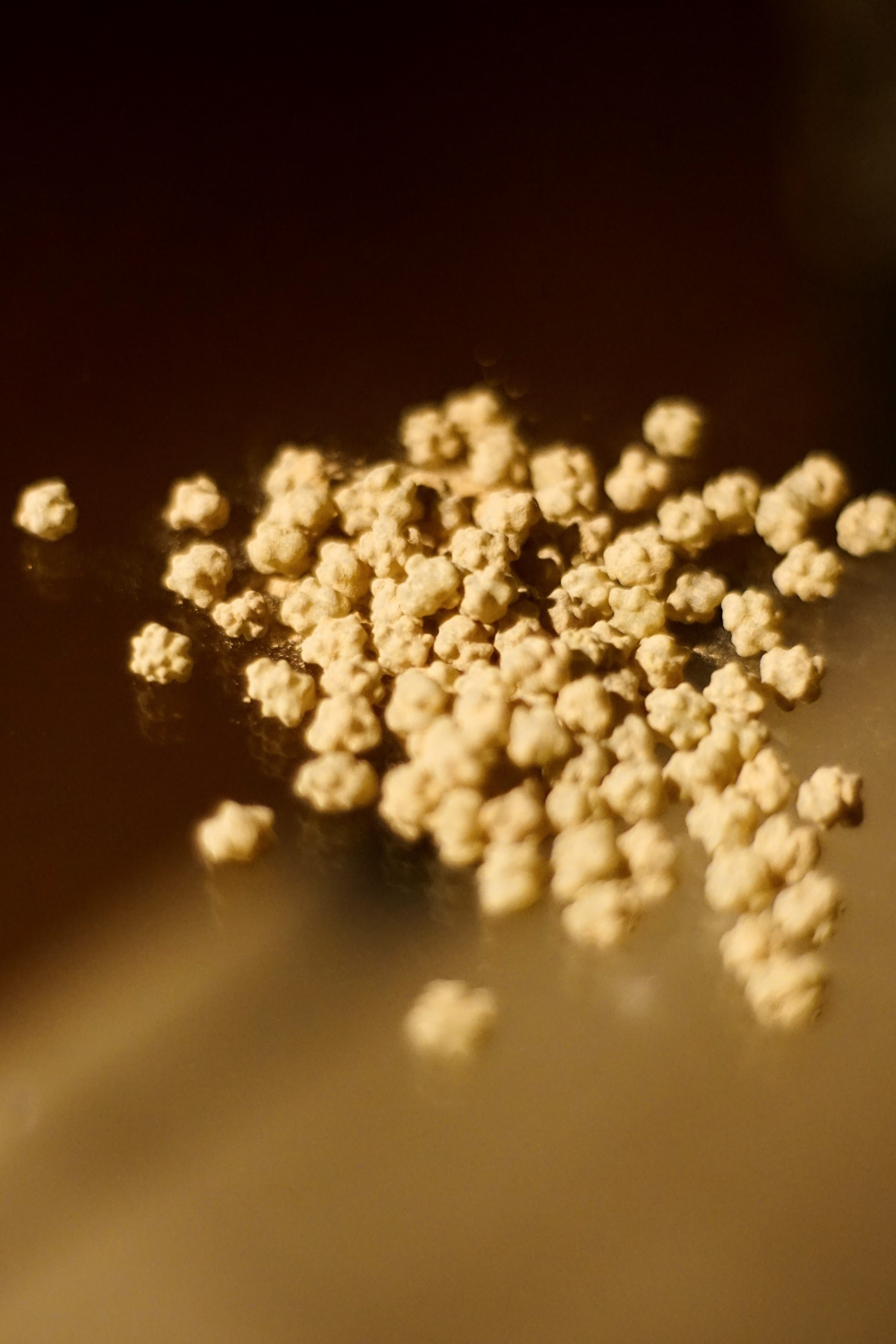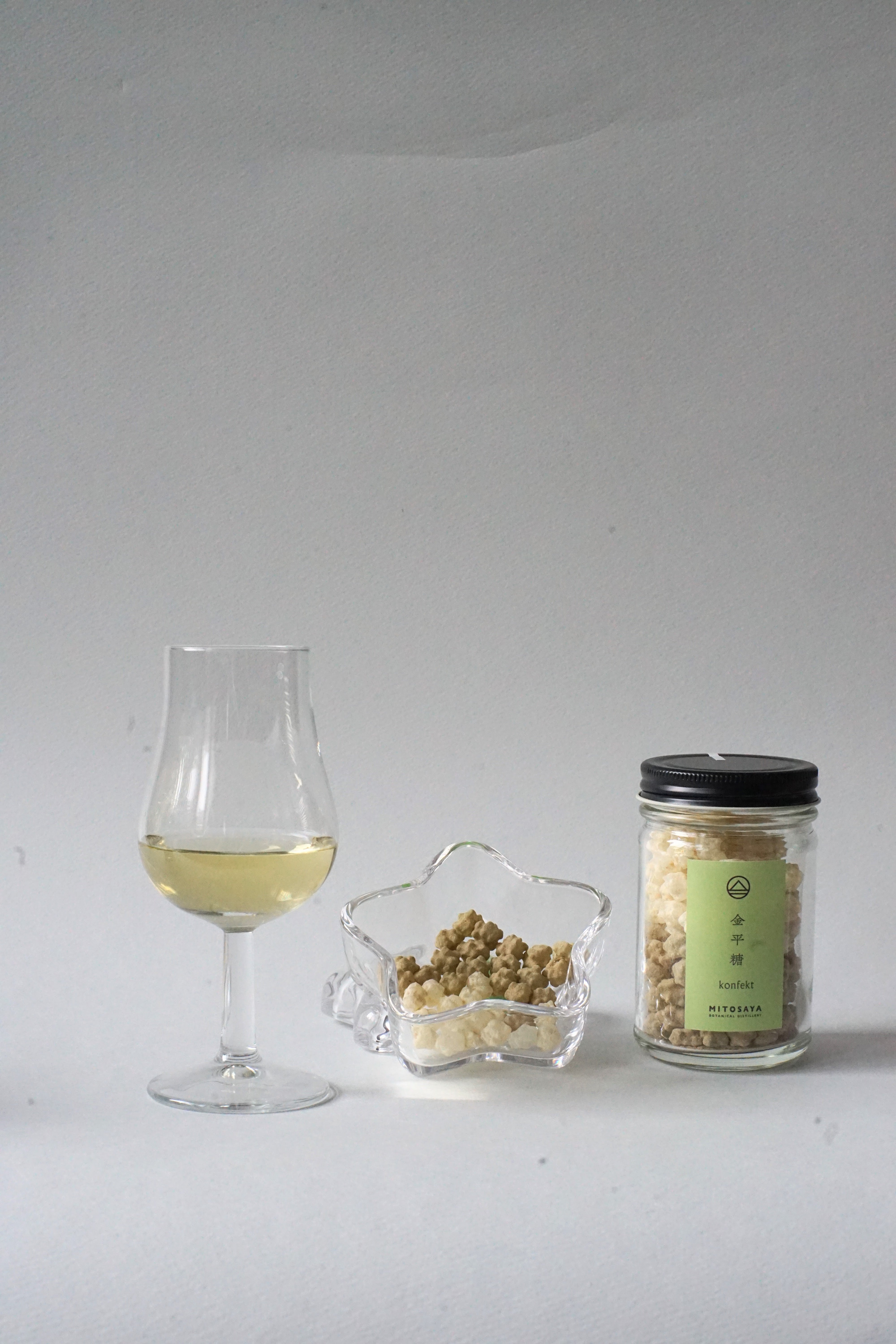 mitosayaと、日本料理店てのしまとのコラボレーションにより制作した、橙と黒文字を使った特別な二種類の金平糖です。小さく愛らしい粒は、北九州市で80年以上金平糖の製造を行う、入江製菓の職人の手で14日間かけて丁寧に作られています。