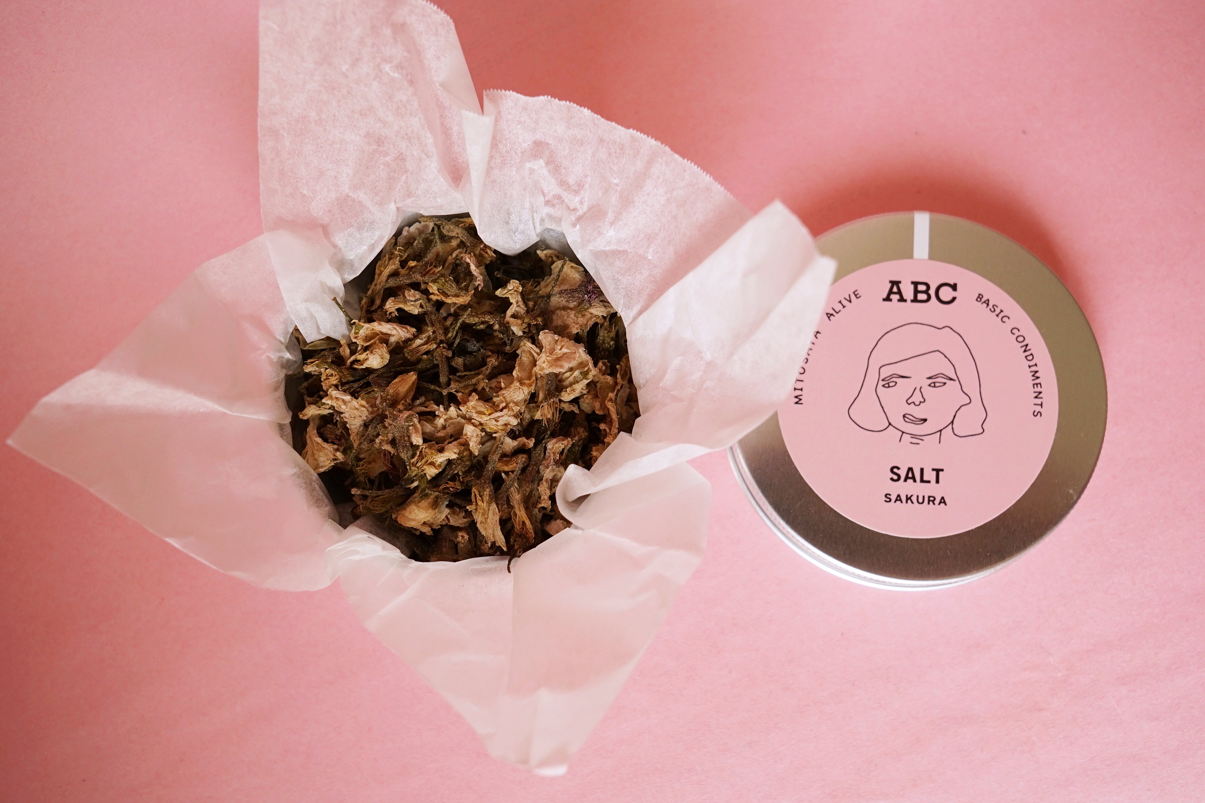 MITOSAYA ALIVE BASIC CONDIMENTS(ABC)の第二弾はお塩。庭で摘んだ桜の花を塩で漬け込み乾燥させました。