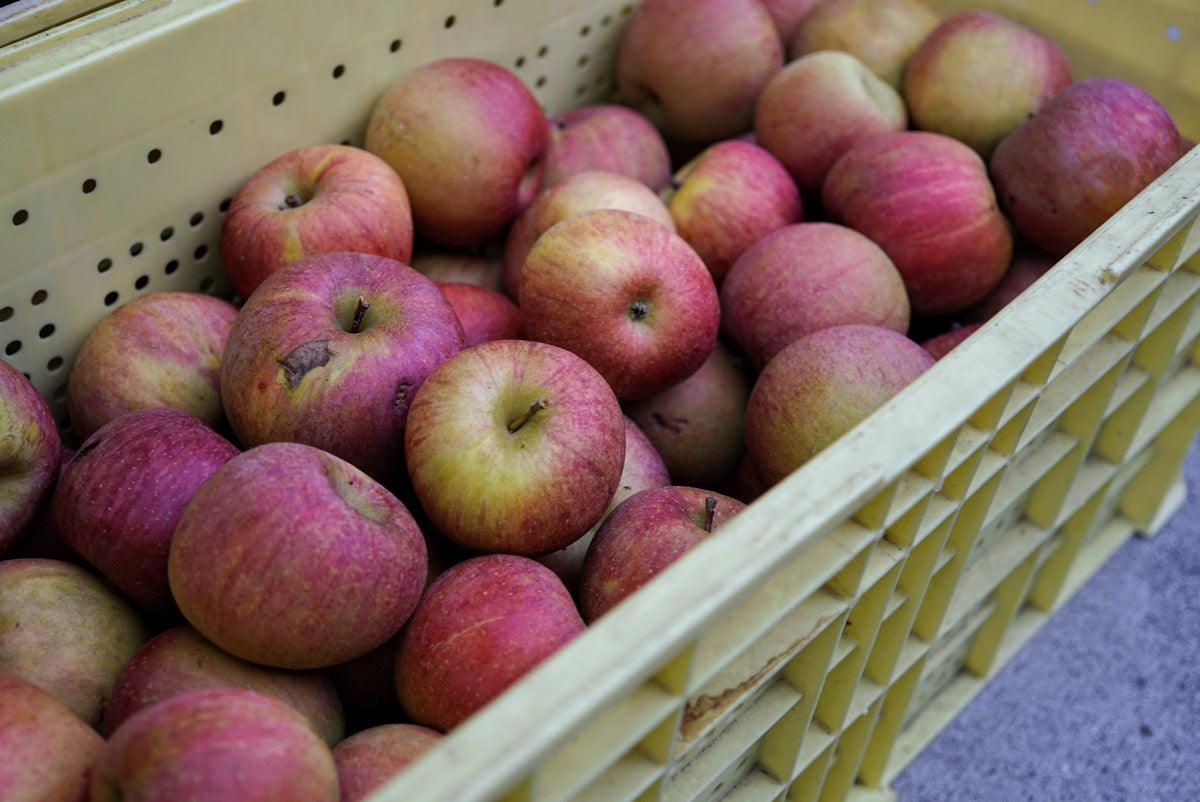 We use a blend of apple varieties—primarily Fuji—grown in an orchard in Akita, Tohoku. Around two tons of apples harvested in December are crushed by hand and slowly fermented in wooden vats, a signature of mitosaya.