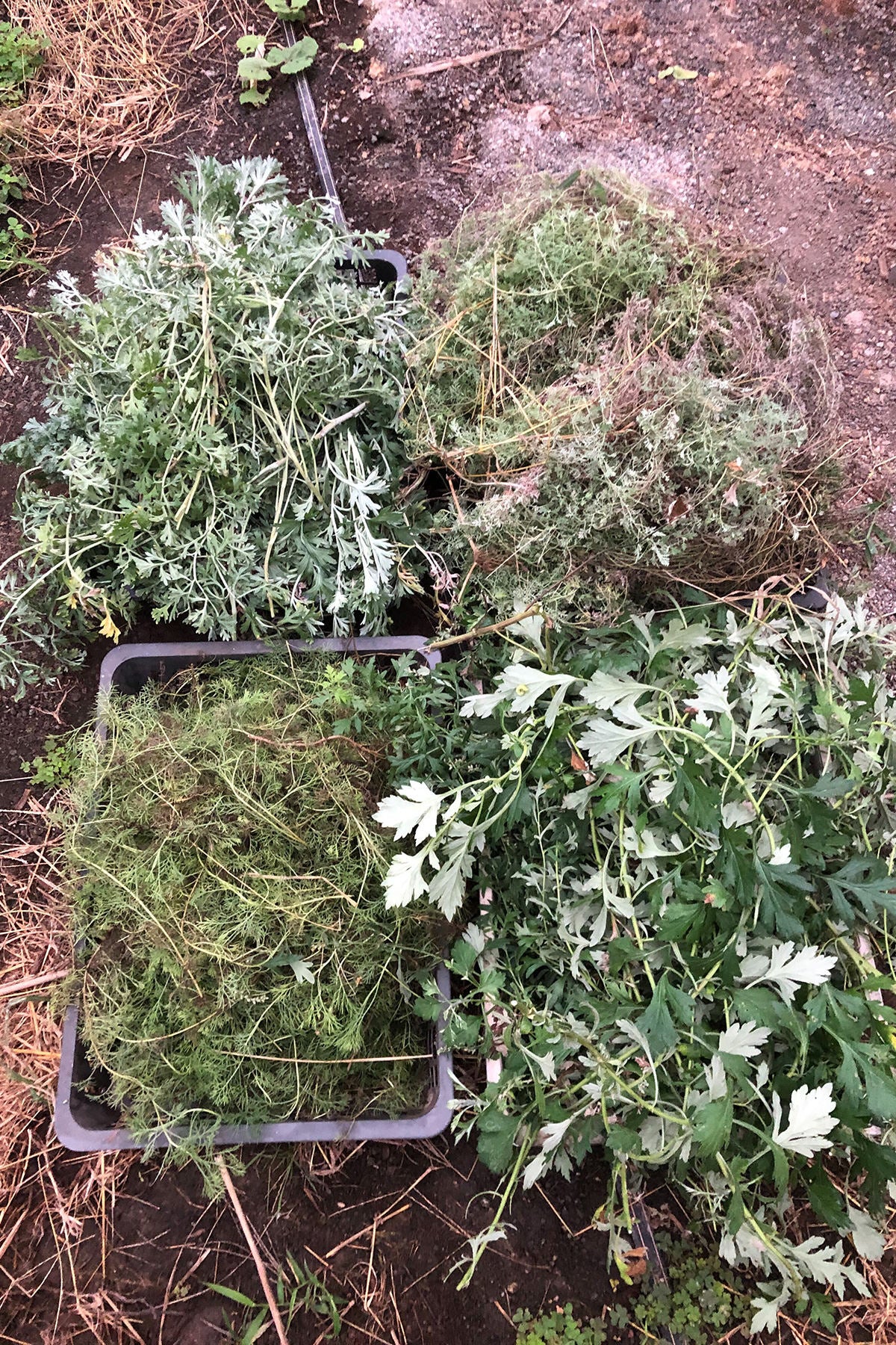 単一のニガヨモギを香りと味わいをボトルにとじこめた、JUST WORMWOODに対して、今回はヨモギのバリエーションを追求しました。苗目とmitosayaで収穫した、ニガヨモギ、マグワート、ポンティカ、サザンウッド、カワラヨモギ。すべてフレッシュな素材で作った、5種類のヨモギをブレンドしています。