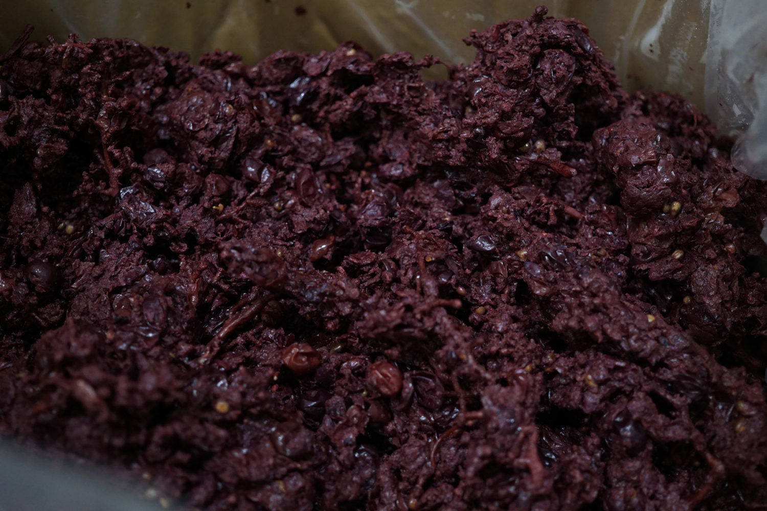 木製の古いバスケットプレスで搾ったばかりのポマースを送ってもらいました。皮の内側に残るワイン、枝や種にある渋み、それらをそのまま蒸留を行いました。フレッシュで野趣ある味わいをお楽しみください。
