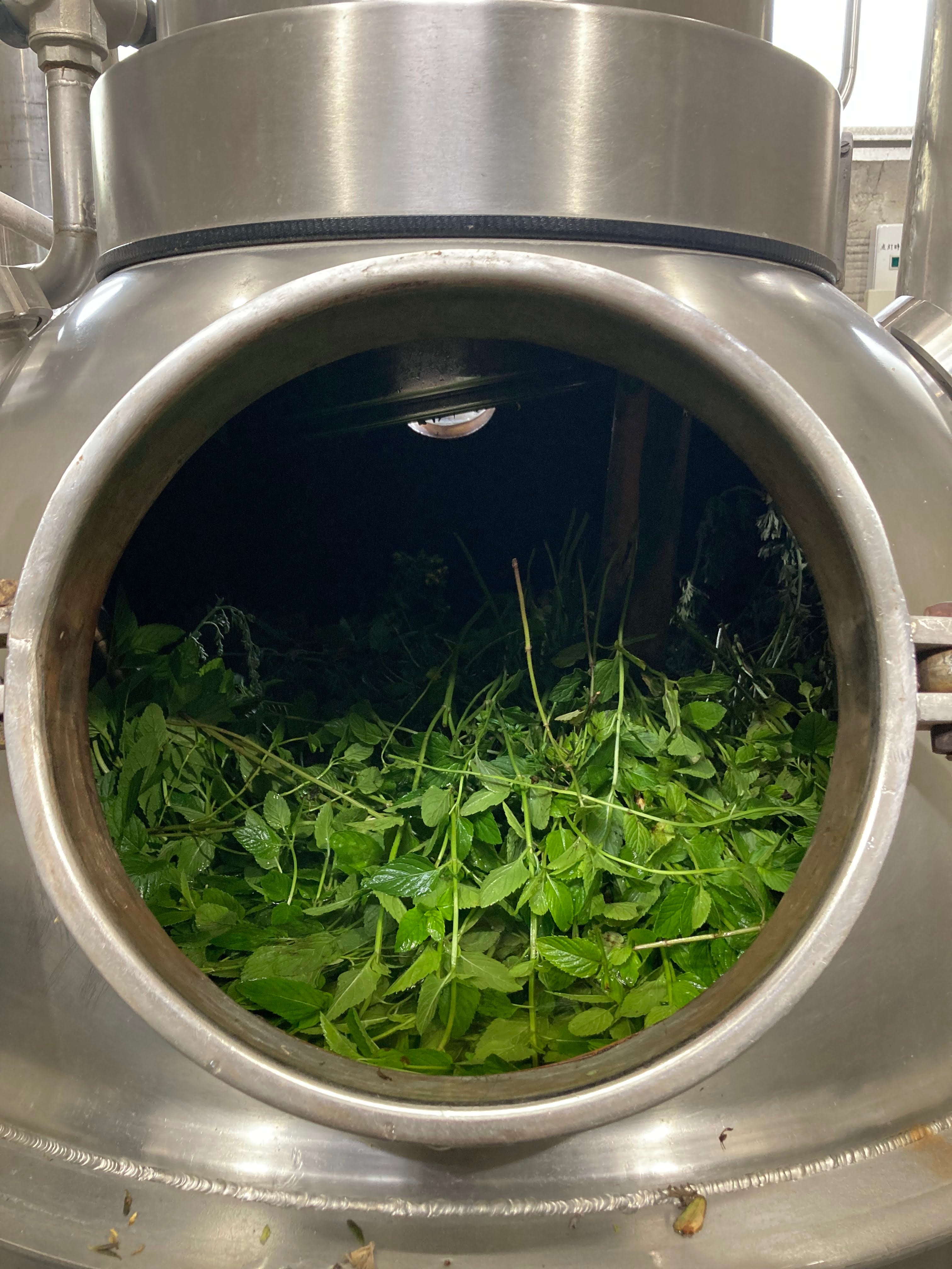The chocolate mint is slowly aged in stainless steel tanks for a year to bring out its deep flavor.