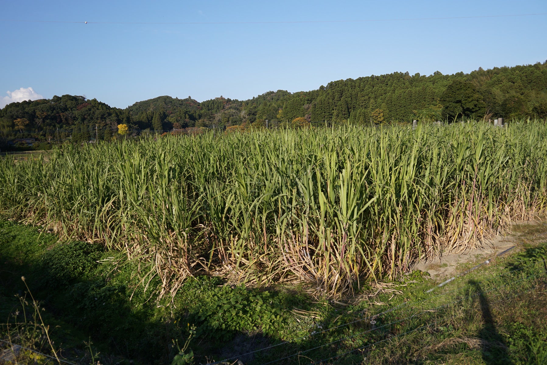 さとうきびといえば南で育つイメージですが、私たちの地元のいすみ市でも、さとうきびを栽培している人たちがいます。10年ほど前からさとうきび栽培を始めた高師さんの畑は、日がよく当たり、風が気持ちよく抜けるいかにも気持ちのよい環境です。