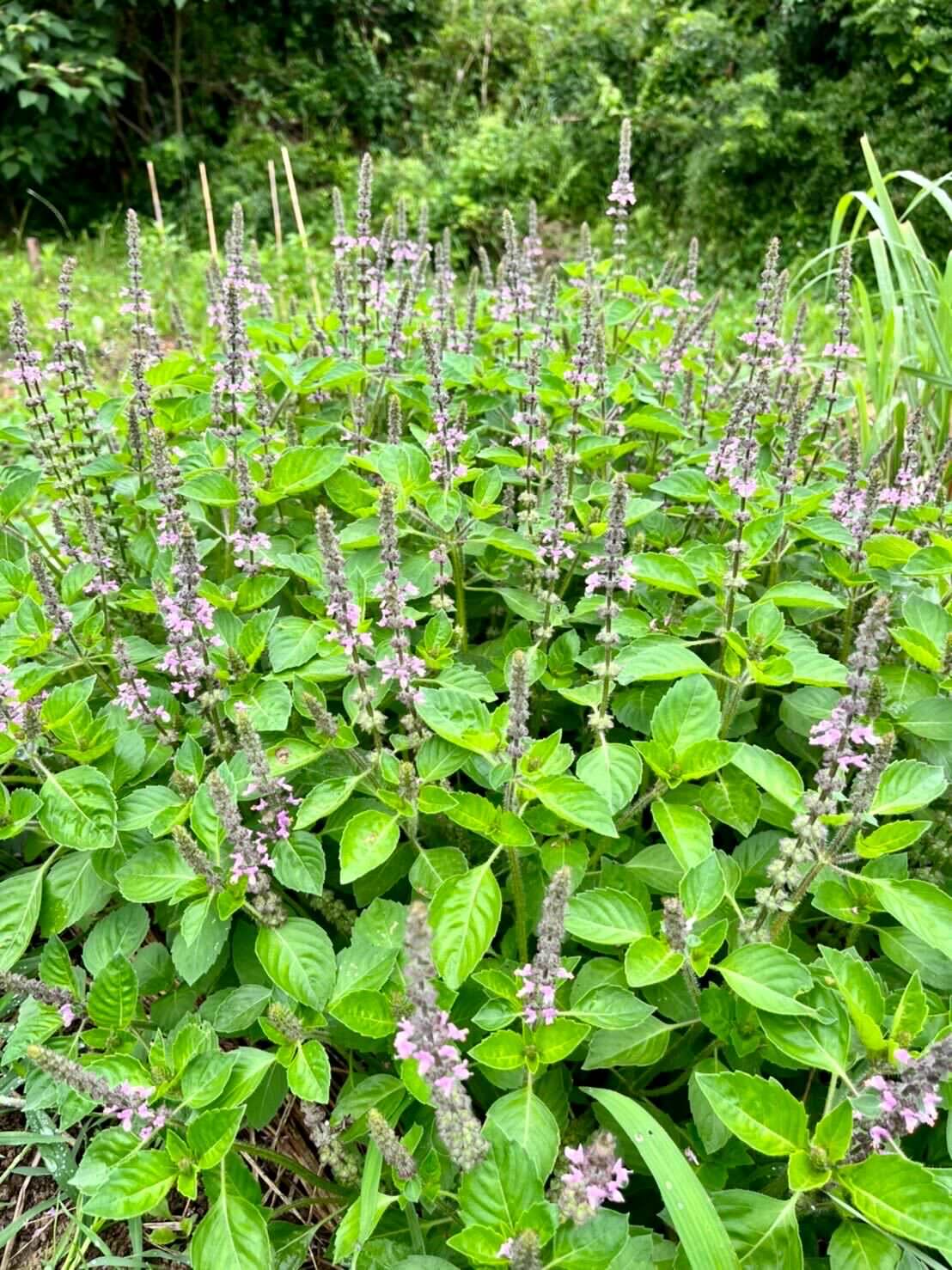 Holy basil is also called tulsi and tree basil is also called vina tulsi. These are used as sacred medicinal herbs and have a spicy, stimulating, minty, cool aroma. In a pesticide-free, chemical-free, fertilizer-free environment in Seedlings, we harvest all the vibrantly growing plants and carefully separate only the flowers and leaves for use.