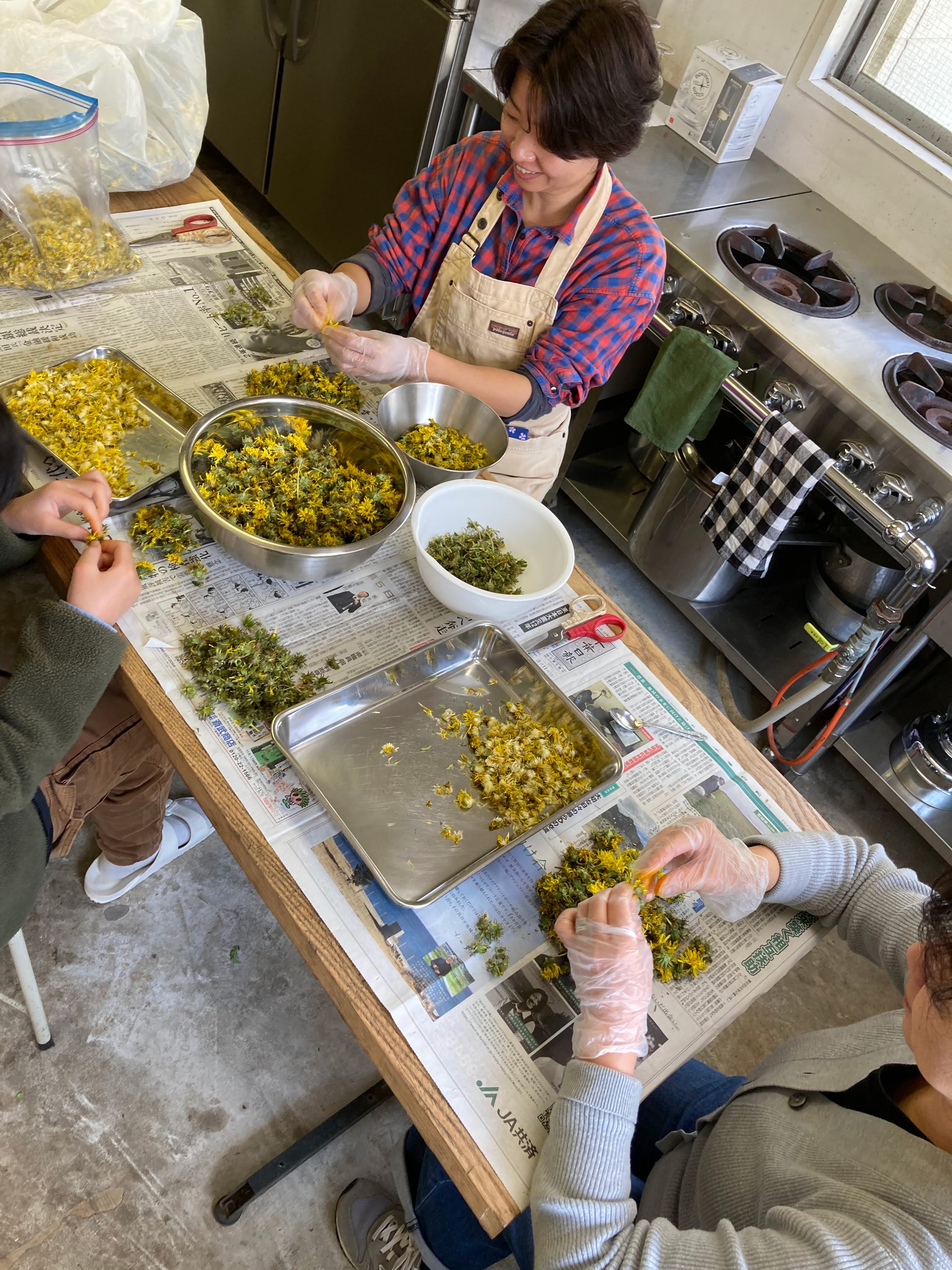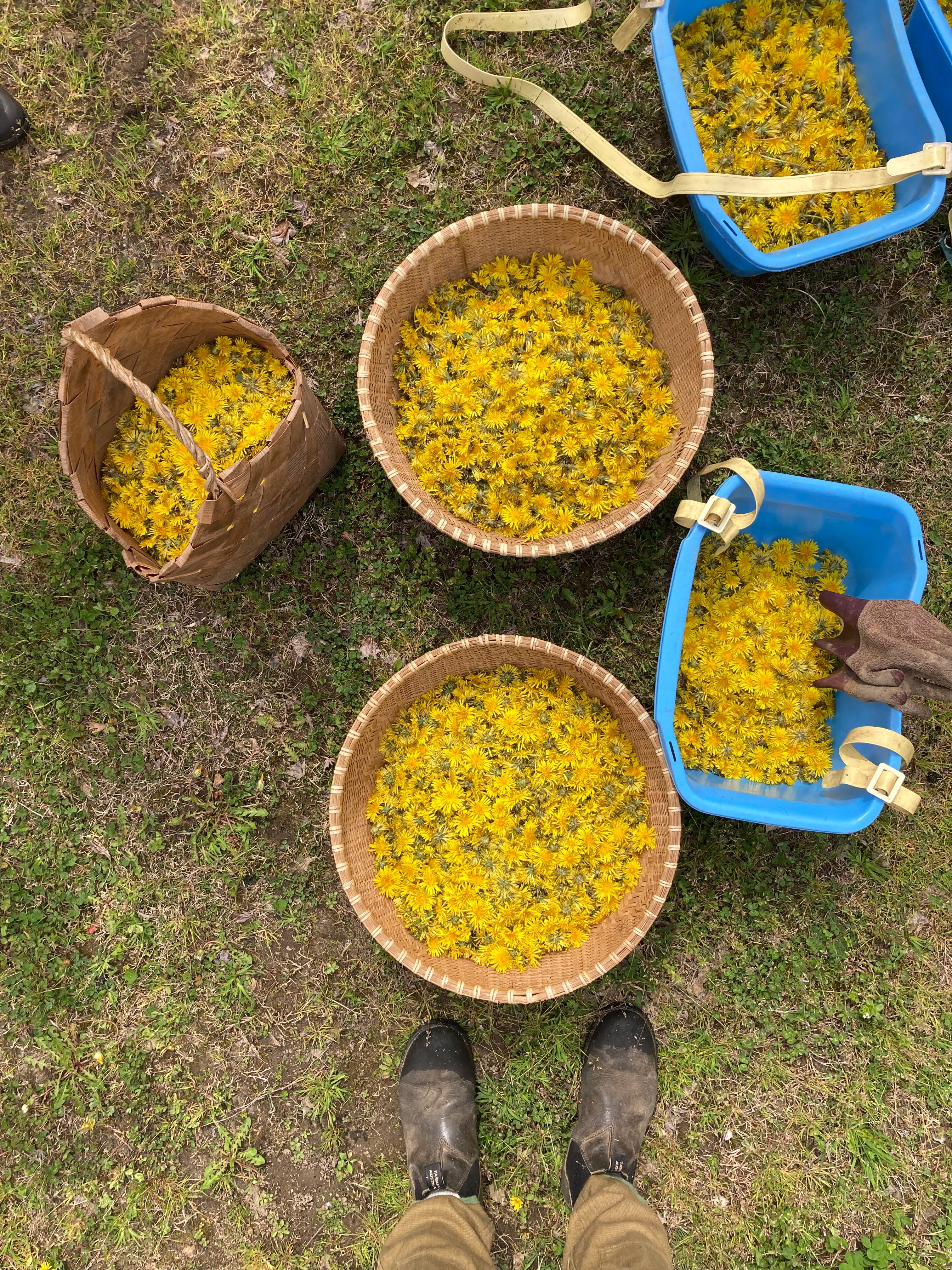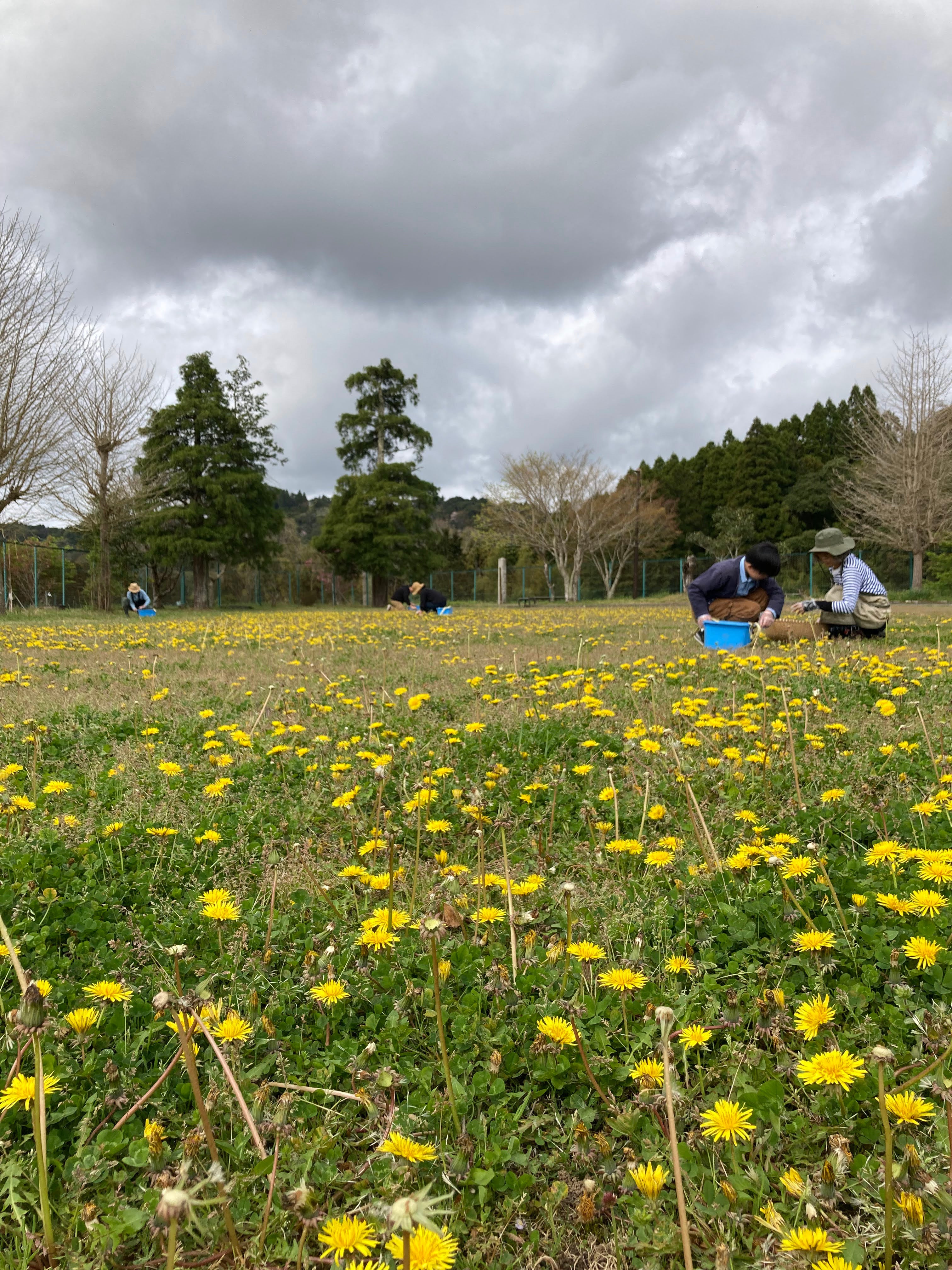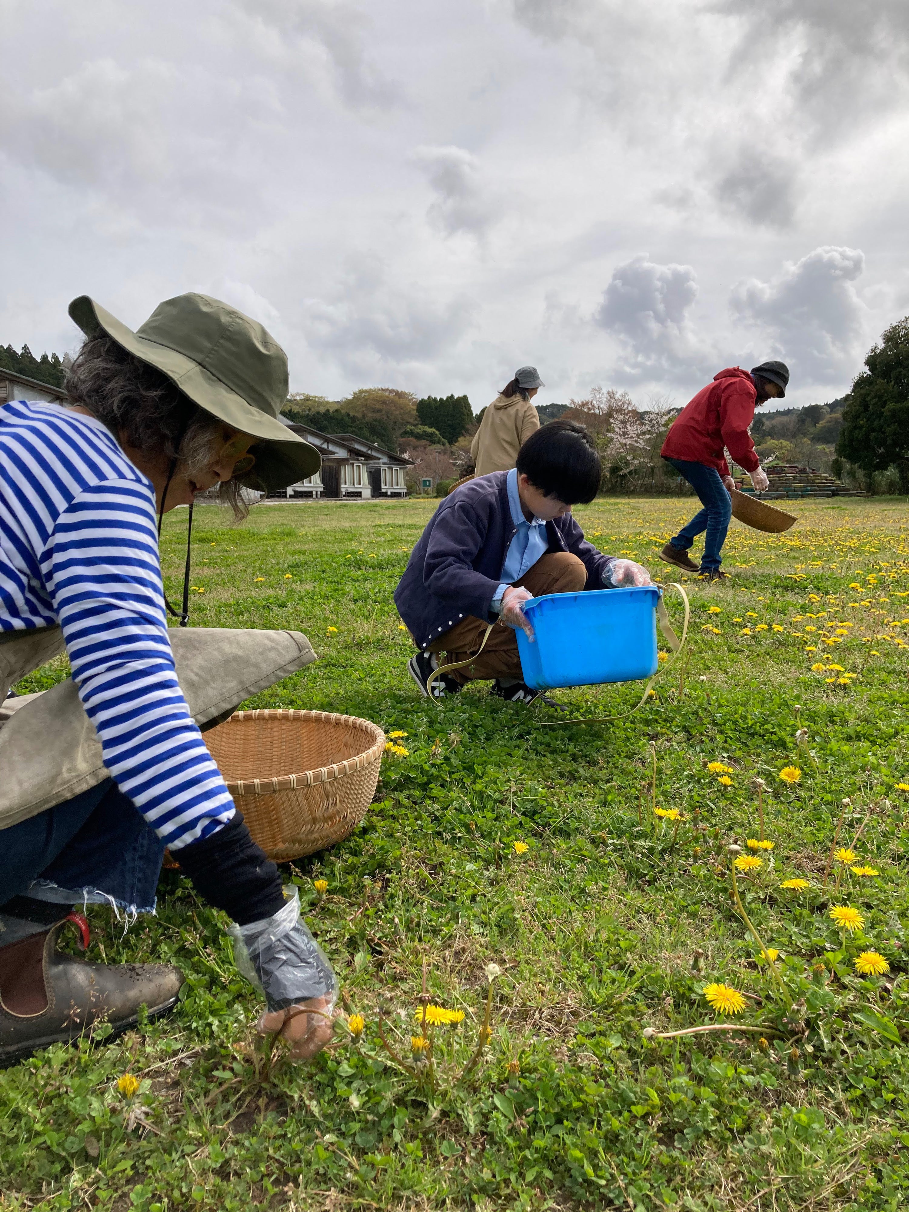 What does it mean to "burn brightly" and "warm itself"? With this interest, we decided to collect dandelion flowers. One spring day, the Farming Friday team gathered in the schoolyard of the abandoned former Aikawa Elementary School. With baskets in their hands, they mindlessly picked the dandelion flowers that were blooming all over the area.