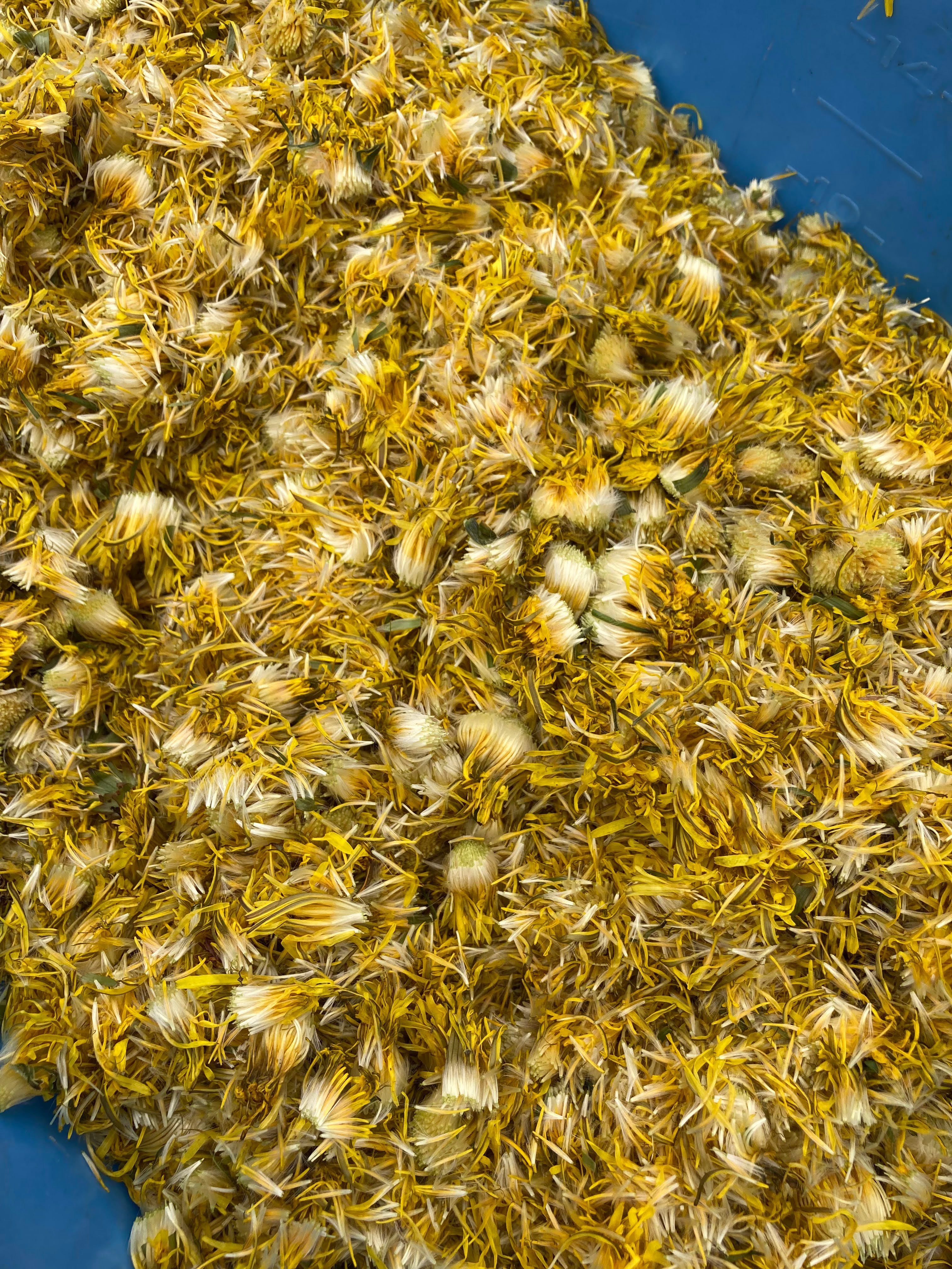 The work was so steady and endless that one might have suspected that new flowers were blooming behind them as they were being picked, but when the basket full of flowers was separated into petals and buds, a soft yellow muddy mass appeared that seemed to "burn brightly.