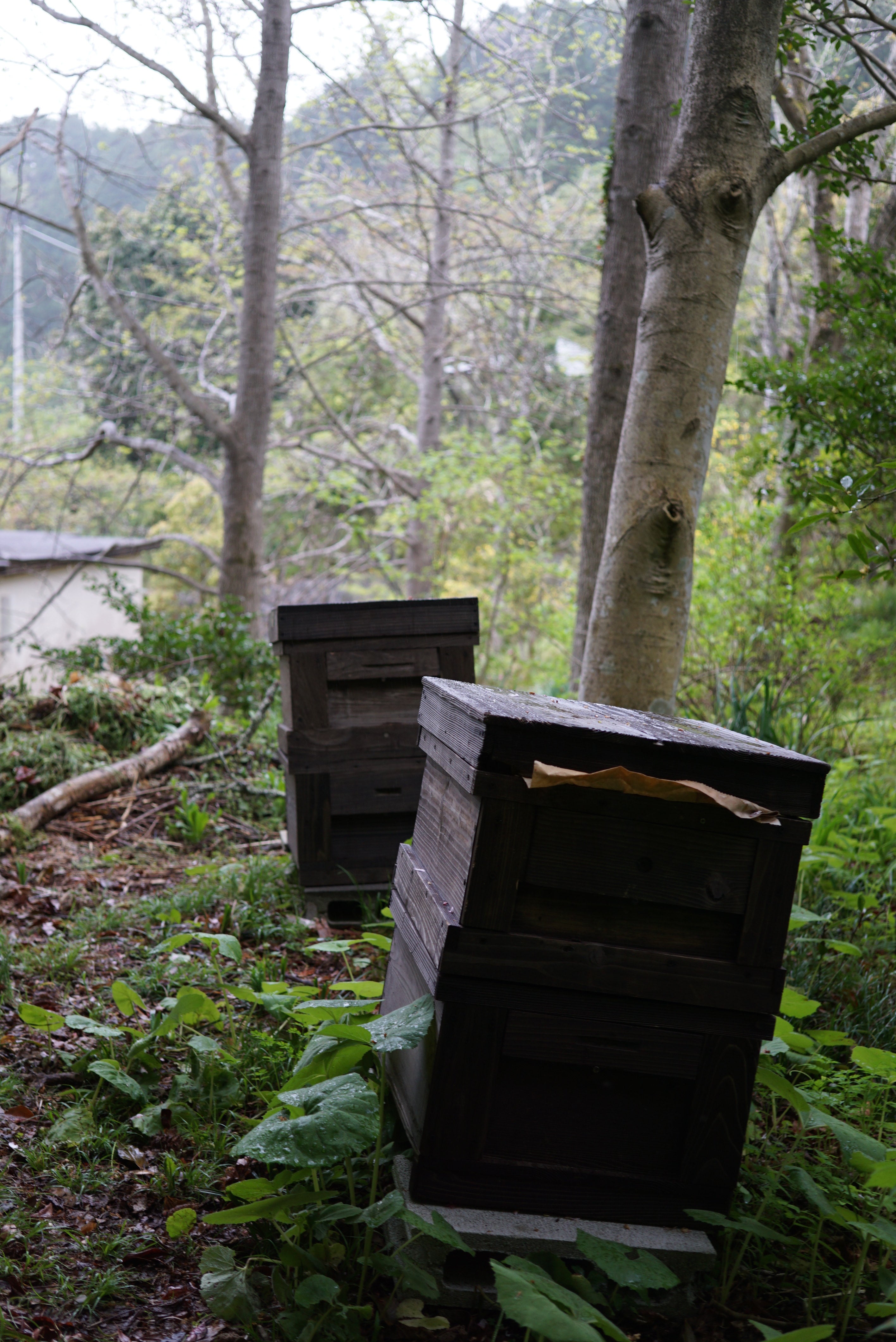 Last summer, we were given honey from Mr. Asao, a beekeeper who also works with us at the mitosaya property, to make mead. If we were going to go to the trouble of making it, we wanted to add some of the seasonal fruits we are preparing as a starter for fermentation. We add figs to the honey from the Prunus persica flowers, nectarines to the nectarines, and wild grapes from the mitosaya. The fruity and rich aroma that rises with the vigorous fermentation is enchanting.
