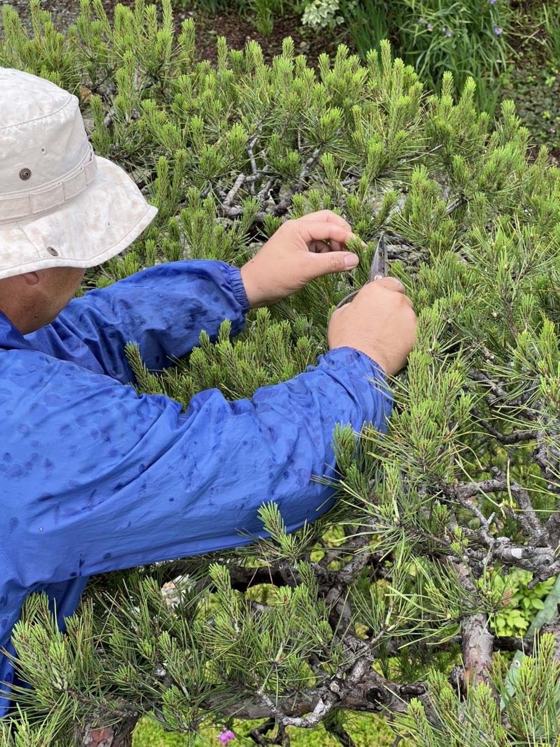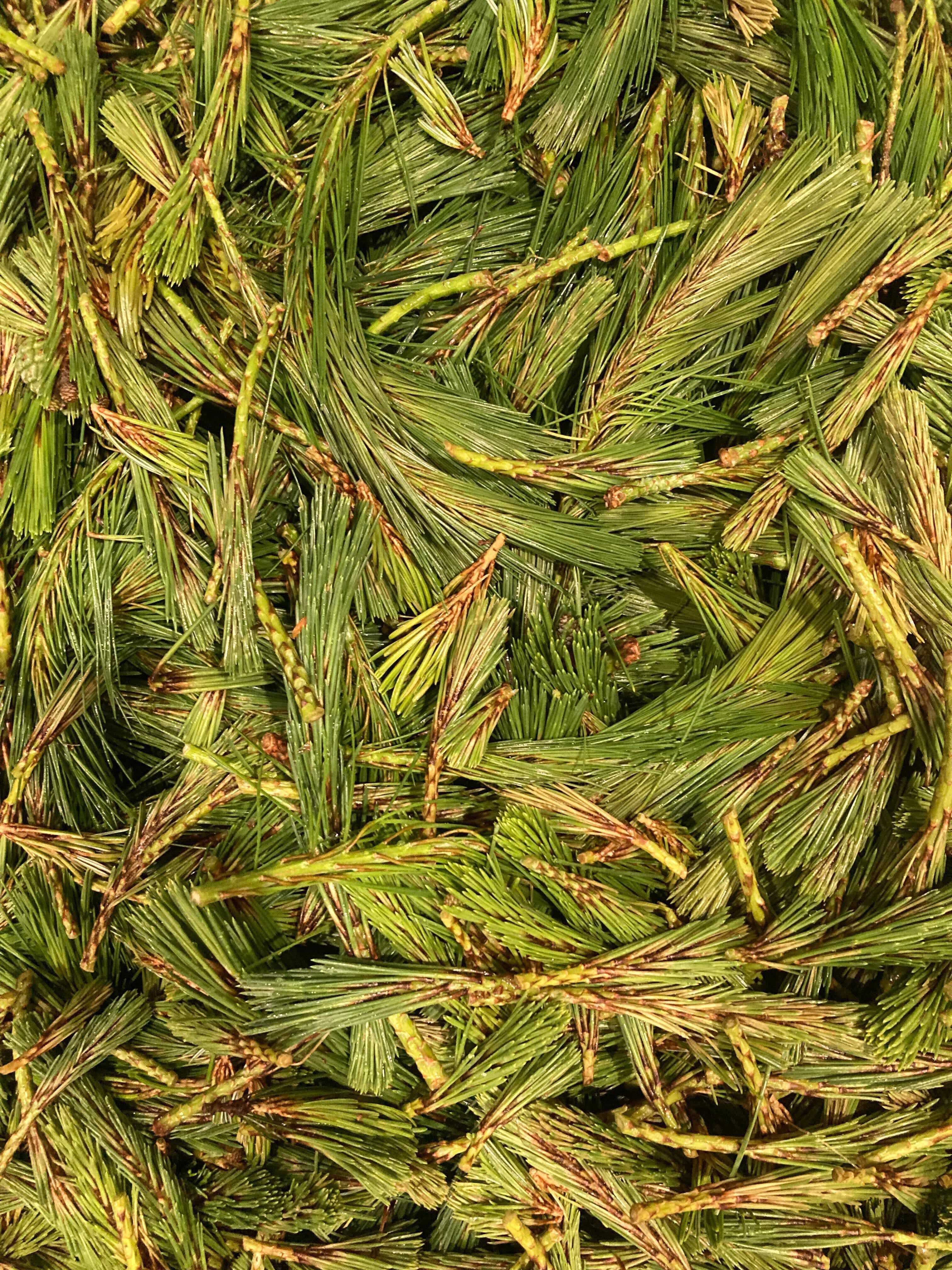 Midori-Tumi (Green Picker) is a springtime process performed by planters to rake away the buds of rising pine trees and maintain the natural, tidy shape of the tree. The new, leafless shoots sent to us by our gardener friends are tender and have a fresh blue aroma.