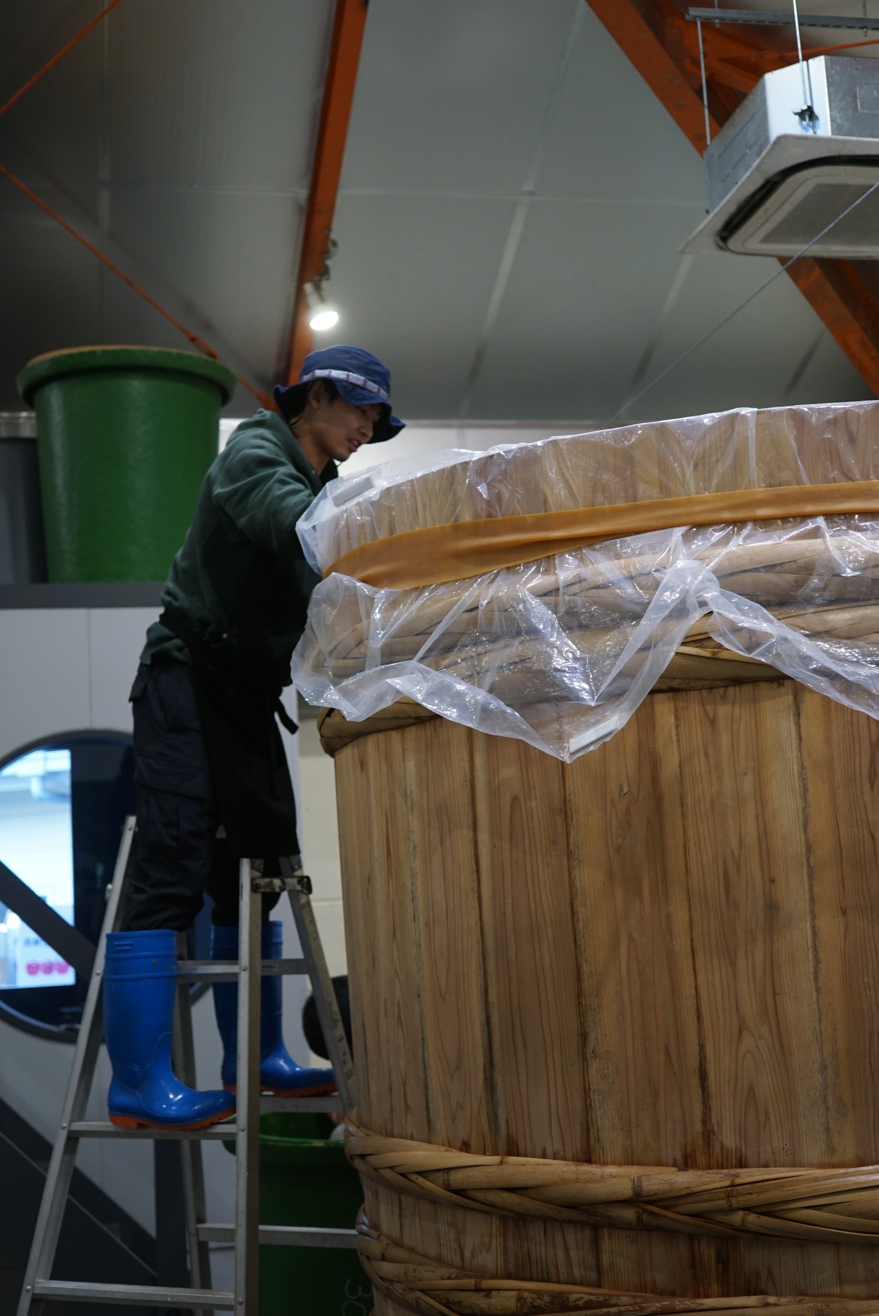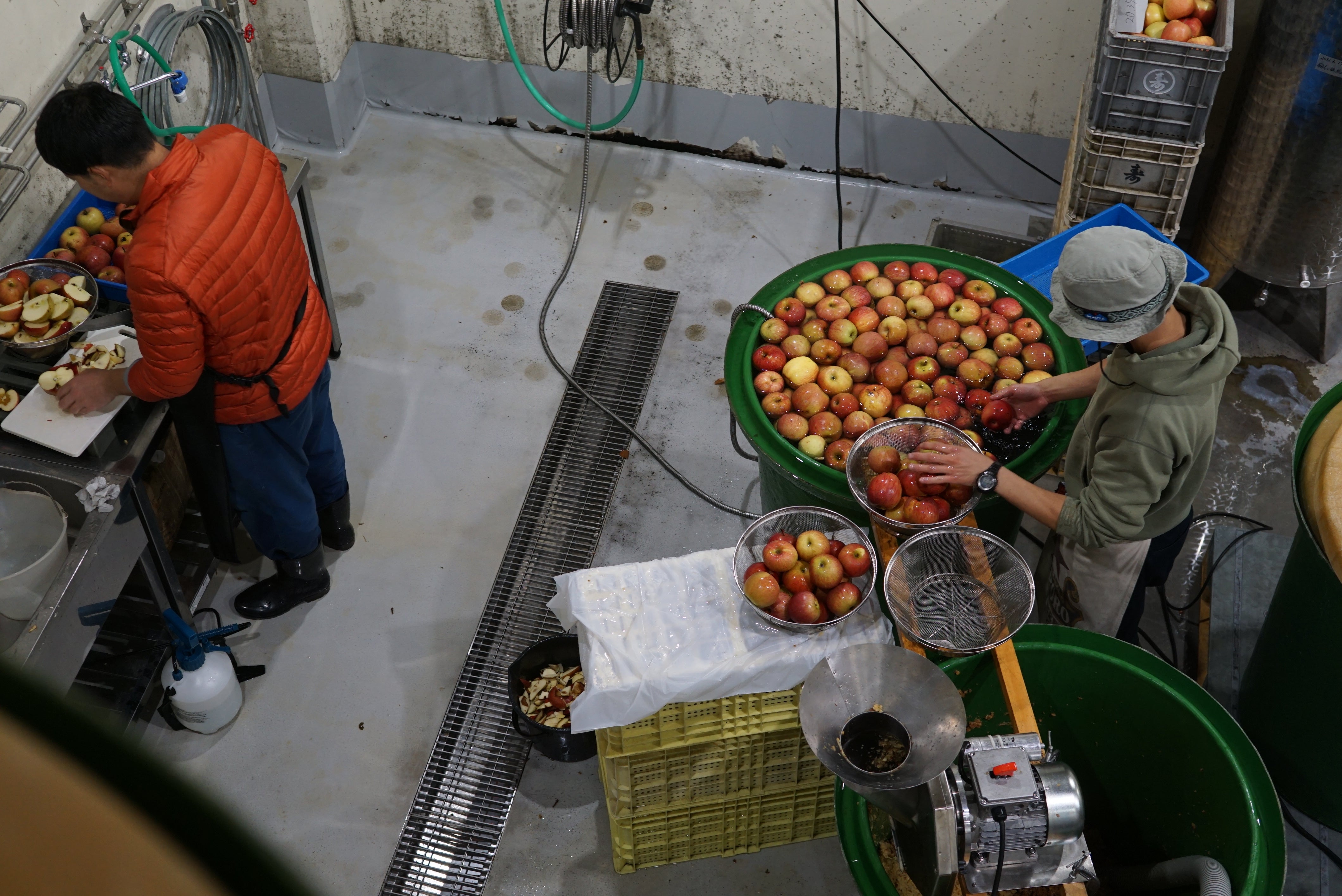 1,600キロのりんごを12月のはじめから年明けまで、木桶でじっくり発酵させ糖分がアルコールに変わった後に、10回に分けて蒸留します。
