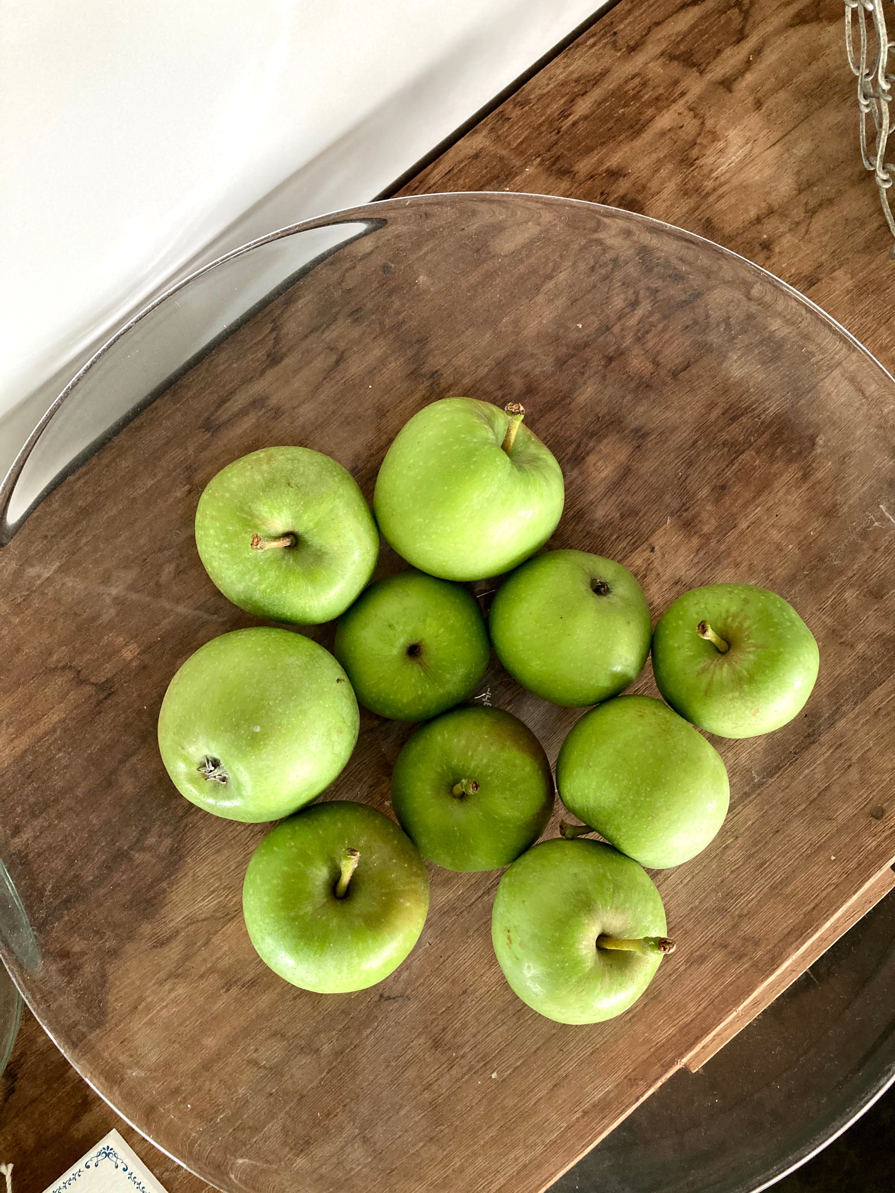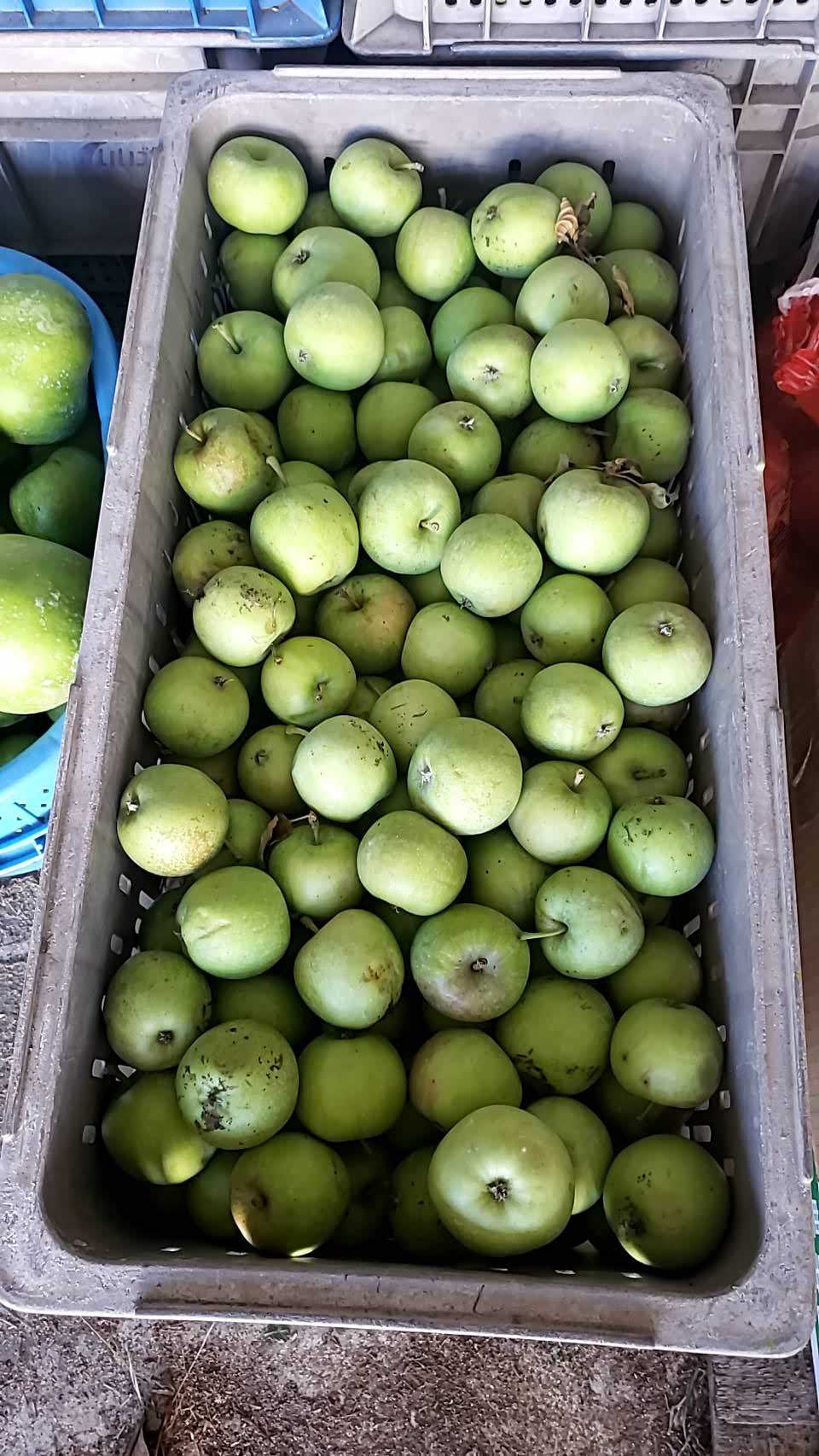 りんごの生育中に間引かれる摘果のりんごは、小ぶりで色も鮮やかな黄緑色。サンつがる、シナノスイート、シナノゴールド、サンふじ、グラニースミスなど、品種も様々で、食べてみるとまだまだ酸っぱく硬いものですが、酸味の奥に甘さと果実味があることがわかります。