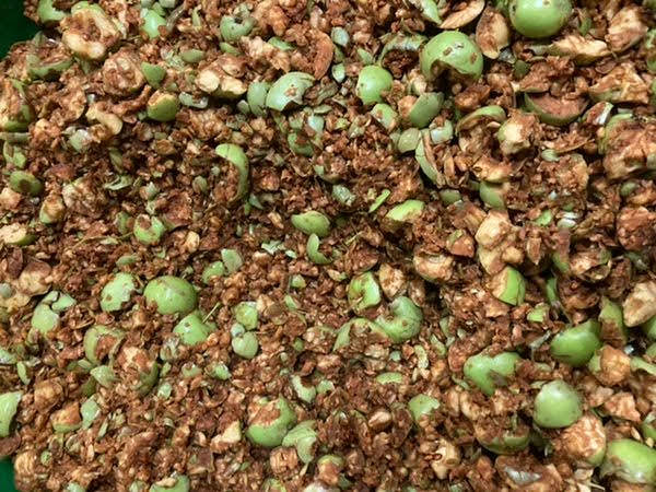 細かく砕いた後、糖分を加え、酵母に長期熟成向けのワイン酵母を用います。水分が少ないことを心配していましたが、二週間ほど経つと発酵と共に青いリンゴの香りのあるシードルが出来上がりました。