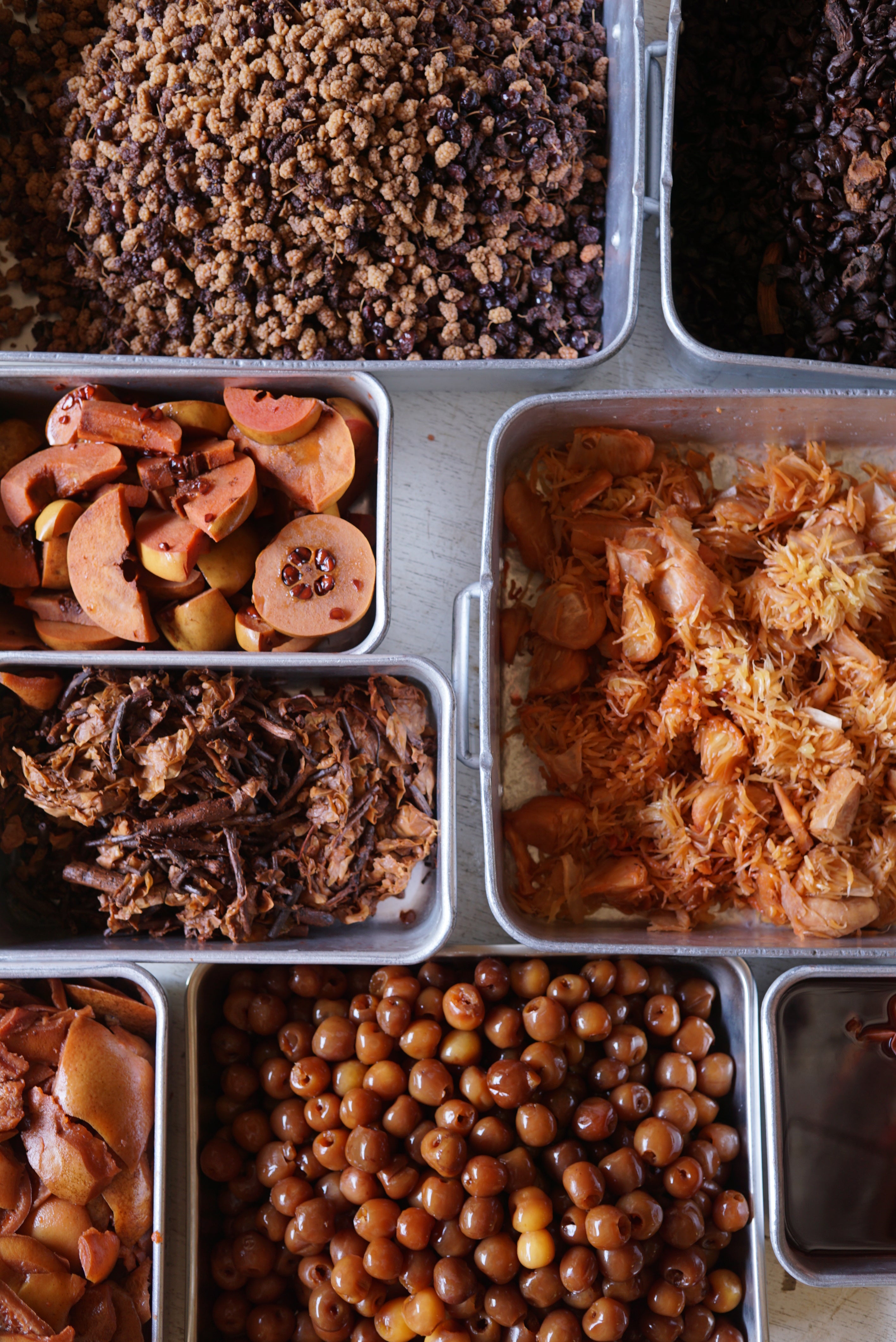 レシピは秘密ながら、数十種類のハーブ、花、根、フルーツなどがブレンドされていて、一説にはなど60種もの原料が配合されていると言われています。