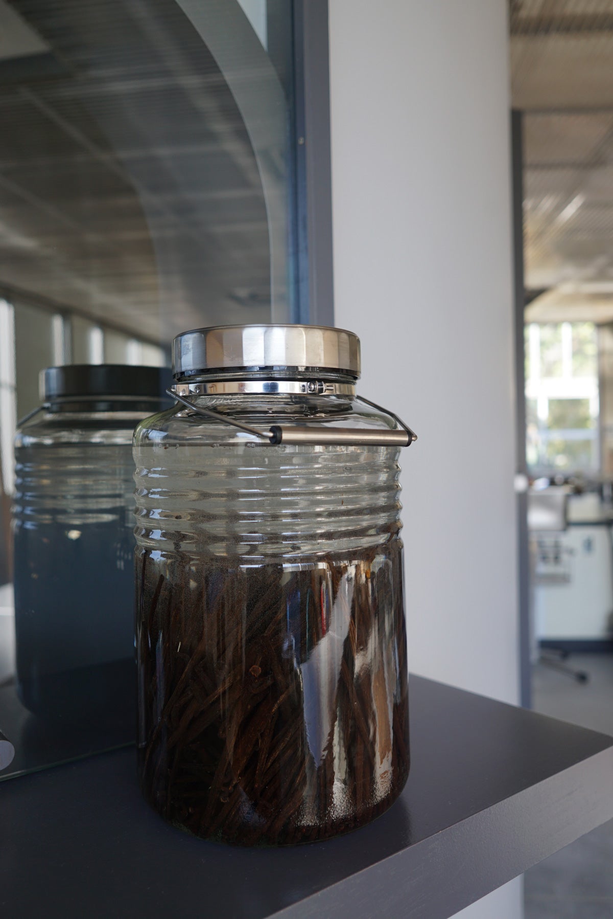 There are no regulations regarding the alcohol used, but we use Muscat Bery A brandy that is being aged at mitosaya. The alcohol content was set to 50% and the vanilla was macerated for 90 days at 100 grams per liter, 40% more than the prescribed amount per liter.