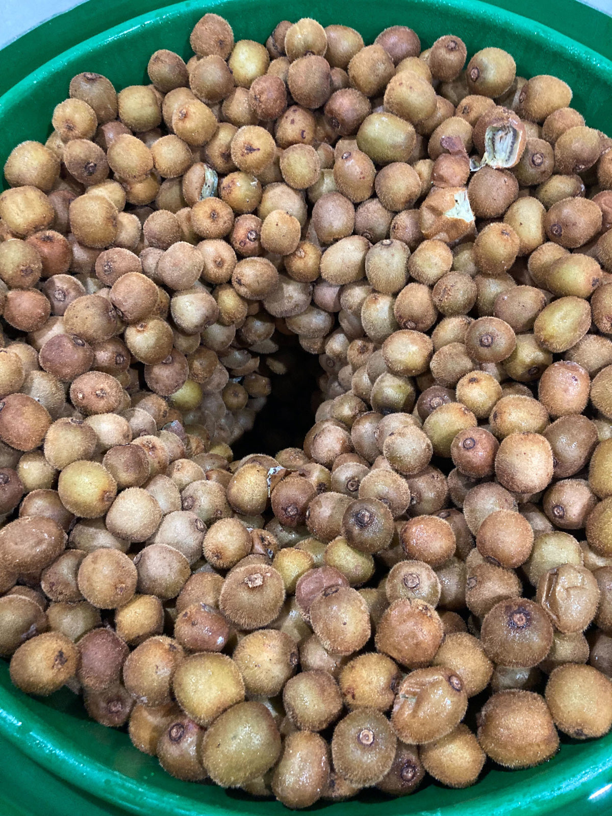 じっくり追熟した後、皮ごと砕き発酵させました。一部は取り分けて実のままでさらに発酵させてます。