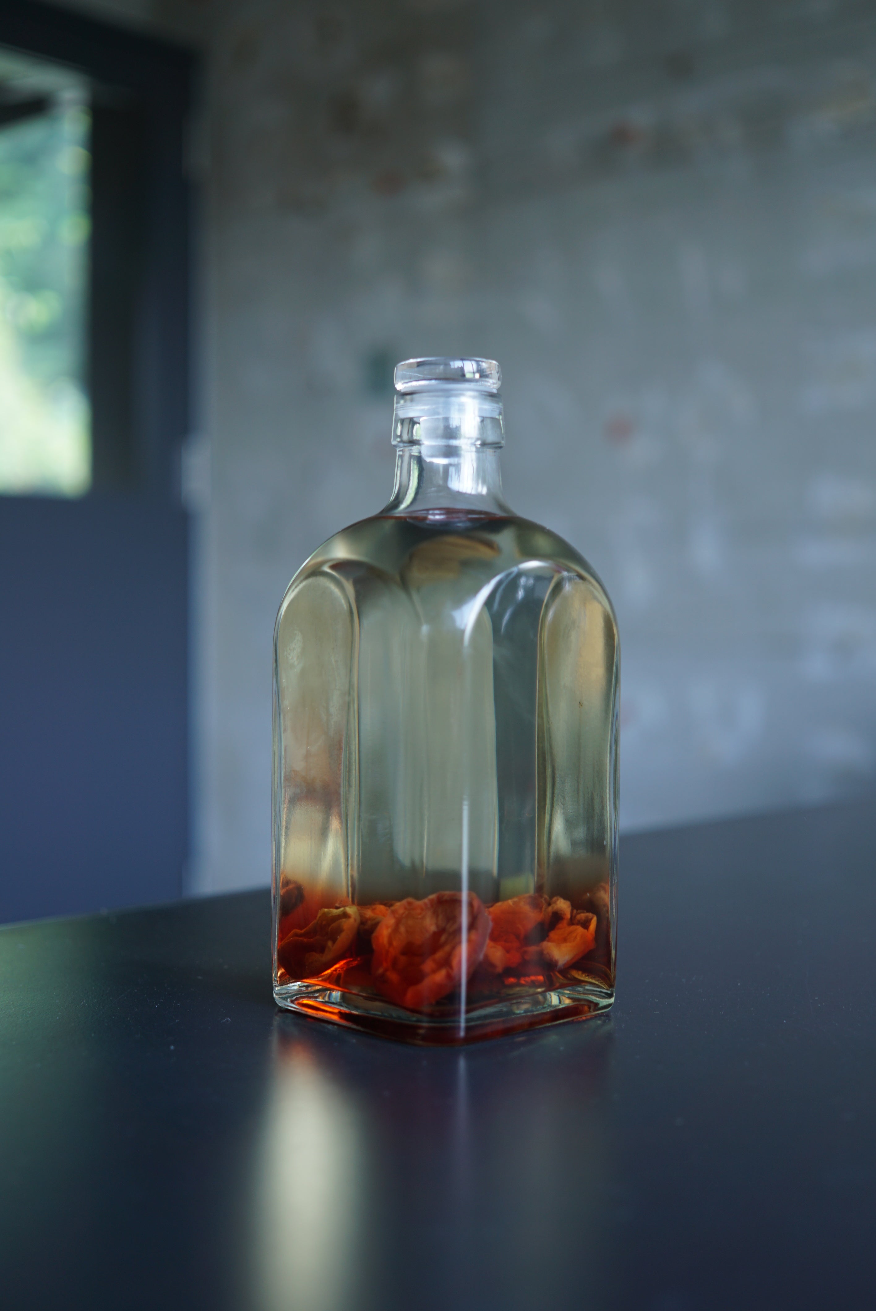 After a few days of slow movement, vigorous fermentation begins. The ethyl acetate and sulfur smells appear and disappear mysteriously. After several days of bubbling fermentation, it gradually settles down, and when the lees floating on the surface of the liquid begin to sink, it is a sign that the sugar has almost been eaten up. After about three weeks of brewing, it was carefully distilled.
