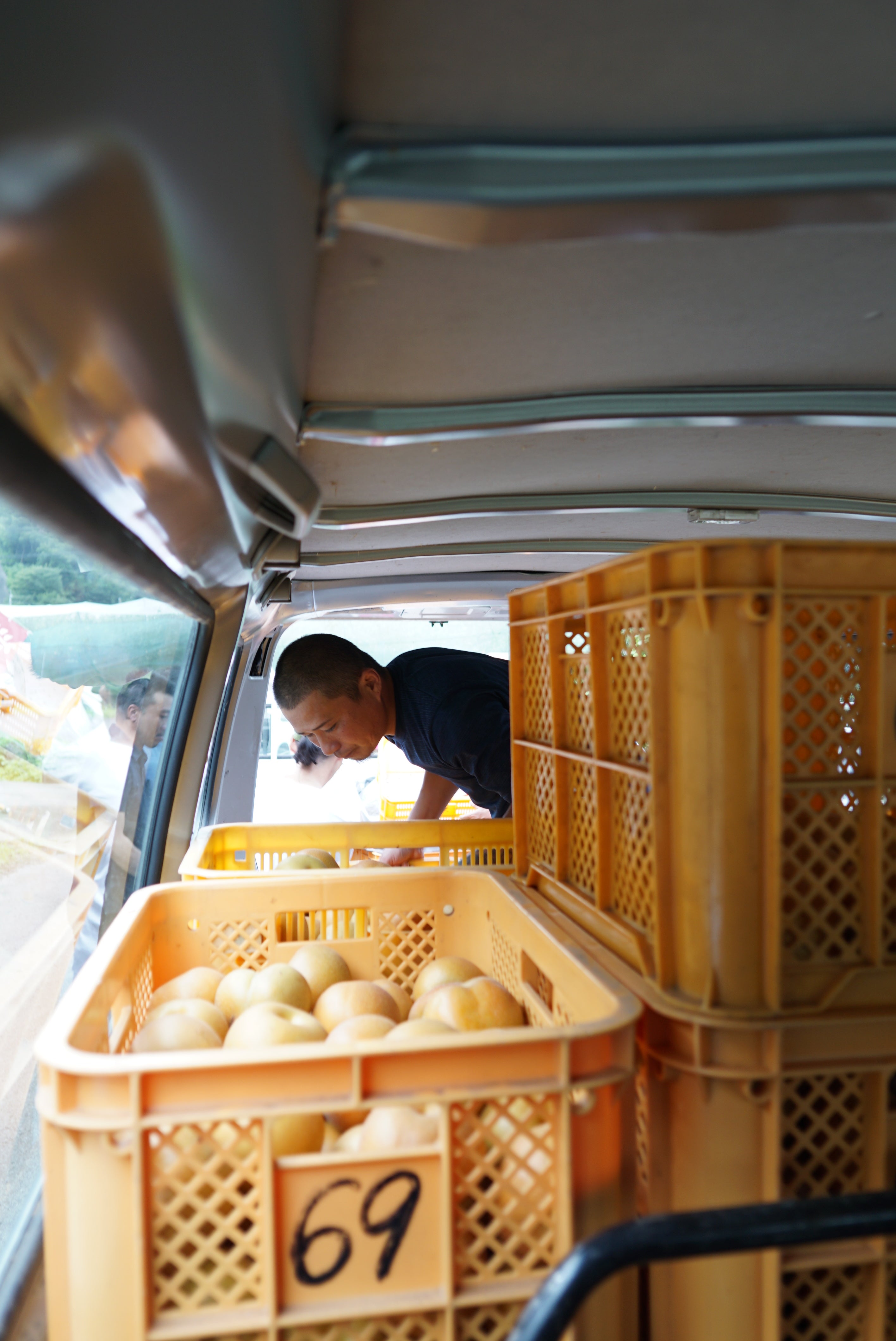 Pears in Misaki-cho, Isumi City, where pear cultivation flourishes due to the mild climate and rich soil near the sea, are grown without bags, so they are exposed to the full summer sunlight and have a fresh flavor and high sugar content. Young farmers gather together, gather the harvest in the morning into containers, and bring them in in the evening. The amount of harvest is over 2.2 tons. Prayerfully placed in wooden vats, it was fermented for 3 weeks and then distilled in 20 batches.