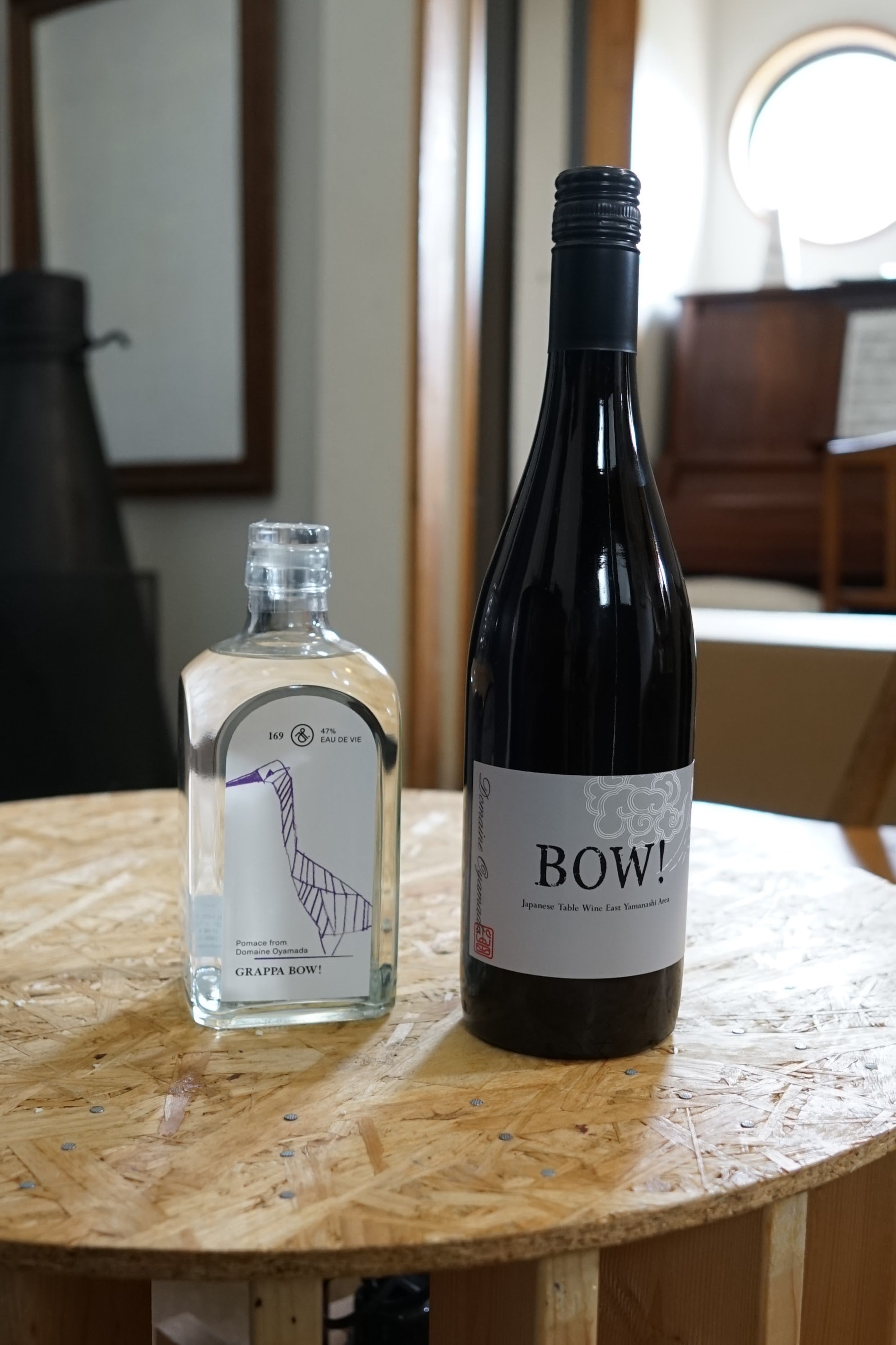 This grappa is made from Cabernet Franc and Muscat Bailey A pomace from the Yamanashi winery Domaine Oyamada's table wine series "BOW!