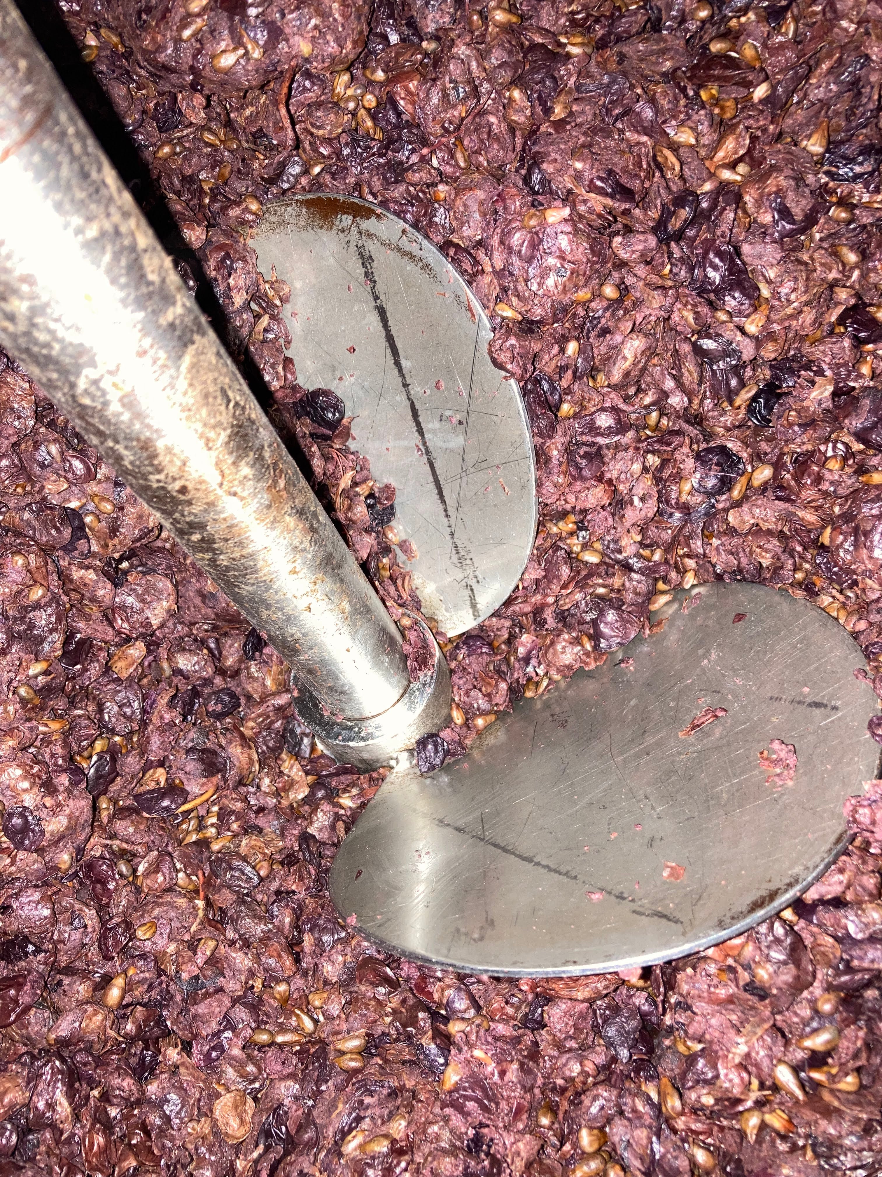 仕込みを手伝ったというIMADEYAのみなさんが運んできてくれたポマースは約200キロ。発酵の余韻と香りを感じるポマースを少量の水とともにそのまま蒸留機に入れ、フレッシュなまま蒸留しました。