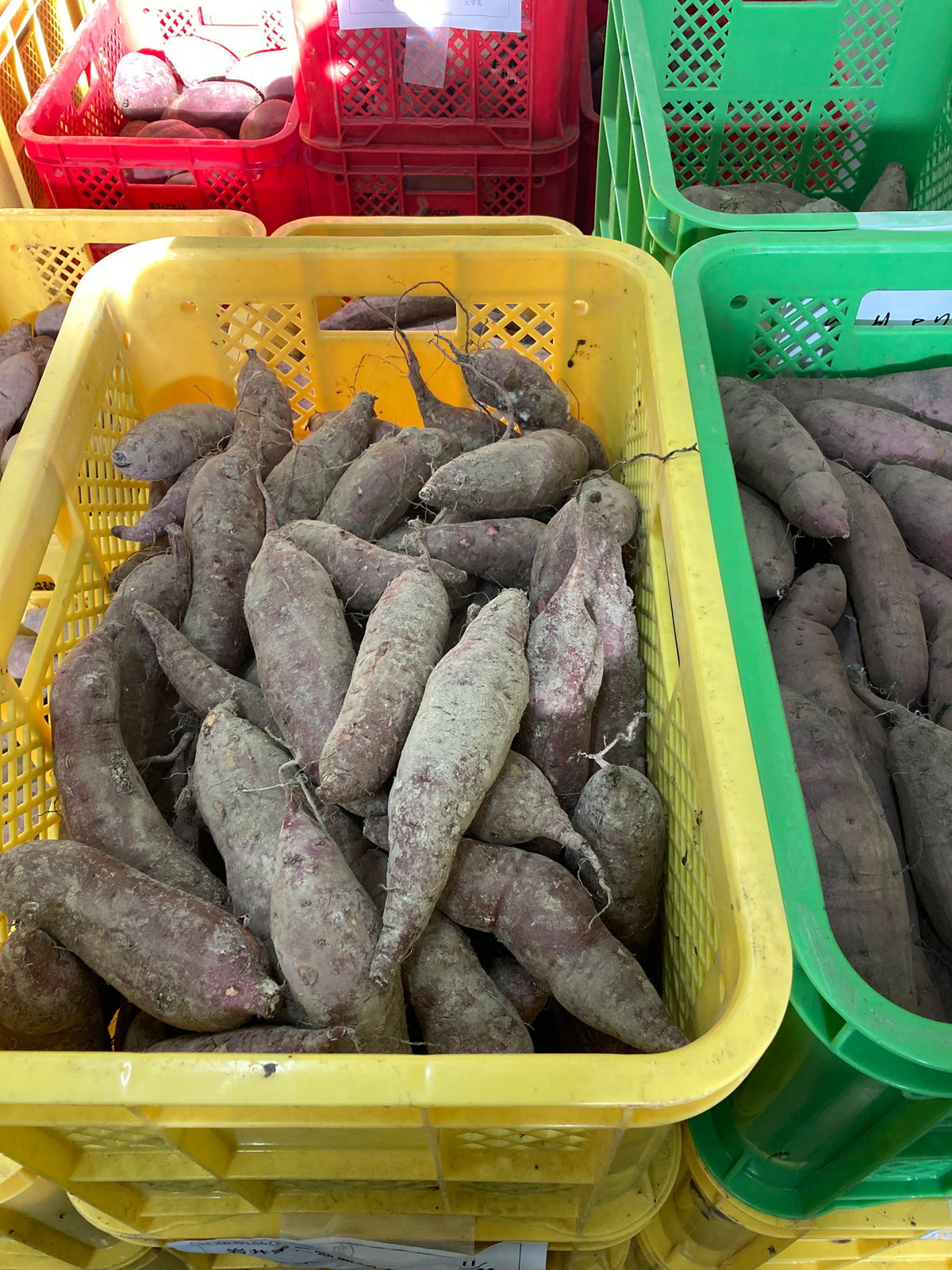Red Haruka is planted in June and cultivated for about 5 months. Sweet potatoes harvested in the fall and winter have a sugar content of about 9 degrees. The sugar content rises to 14 degrees by maturing in refrigerated storage in a low-temperature, high-humidity environment. They are then washed, sorted, and steamed using local natural gas. The sweet potatoes are ready when you stick a splittable chopstick through them and it goes right through. The steamed sweet potatoes are then peeled with a knife, sliced, and laid flat to dry. This is how hoshi-imo is made.
