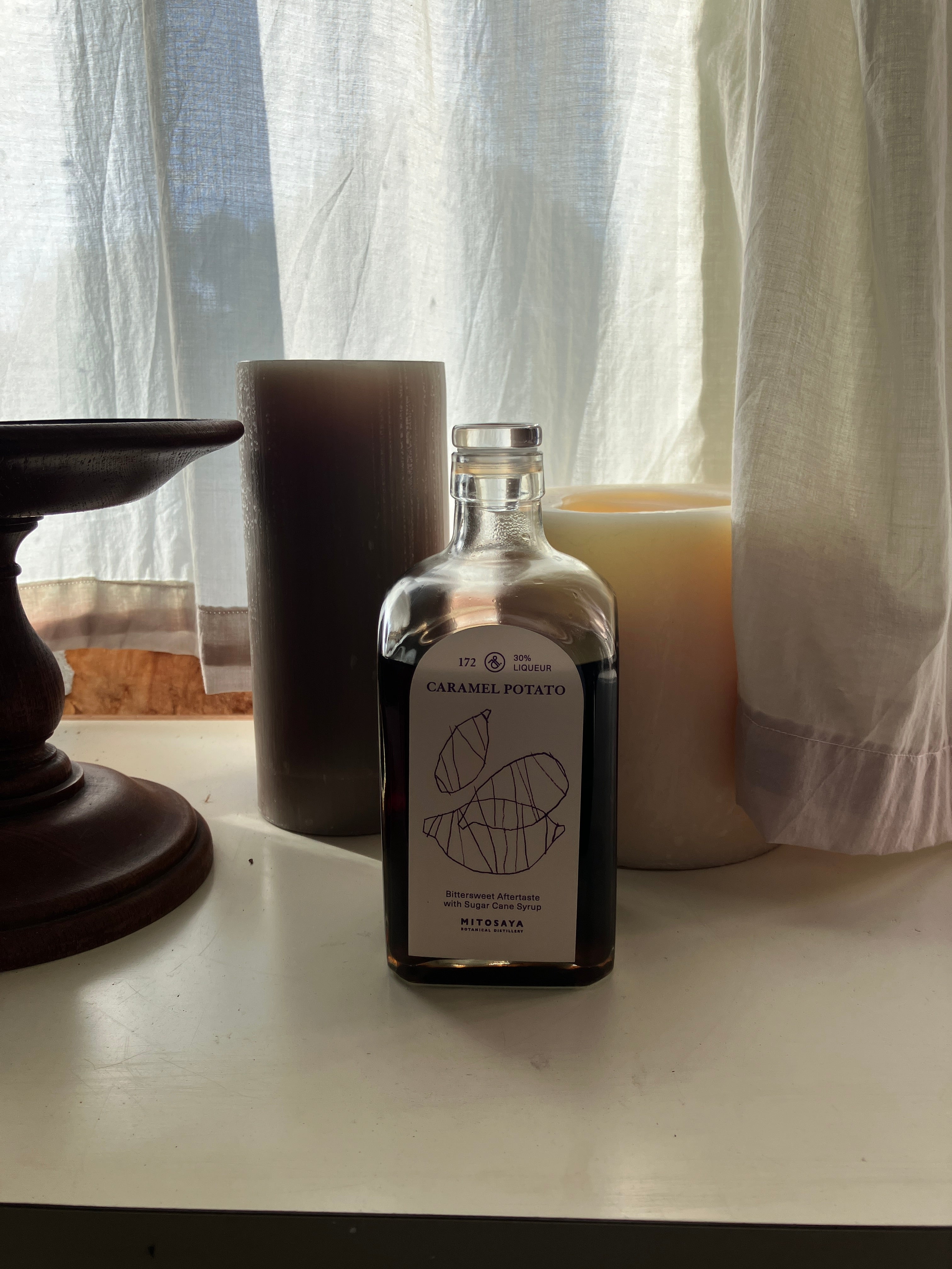 mitosayaの隣町、千葉県長生郡睦沢町などで栽培されたさつまいもと、いすみのさとうきびからできた黒蜜を使った、自然な甘さと豊かな風味のリキュールです。