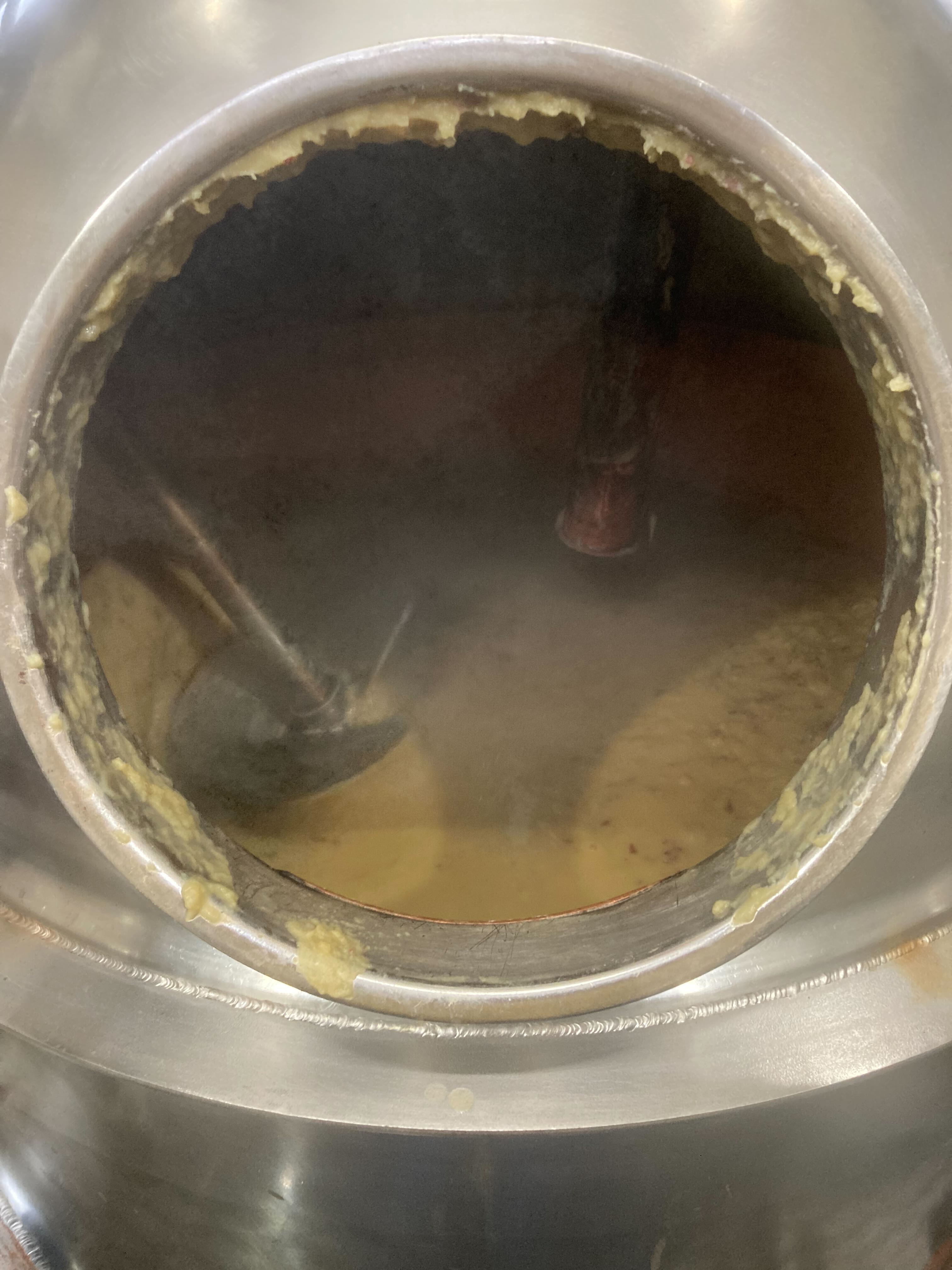 熟成と糖化、さらに蒸して柔らかくする作業を終えたものなので、お酒づくりには最適です。発酵に最適の温度になるようにお湯を加え酵母を加えて発酵させた後に、冷却を強めに、より香りを引き出す蒸留を行います。