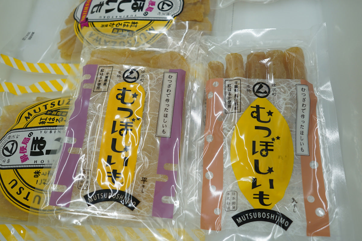 睦沢町は海と山の間に位置し、里山の風景が広がるのどかな土地です。この町で耕作放棄地などを利用したさつまいもの栽培とほしいも「むつぼしいも」の製造が行われています。栽培されているのは紅はるか。高い糖度としっとりとした質感が特徴で、麦芽糖の比率が高いため上品な甘さがあります。