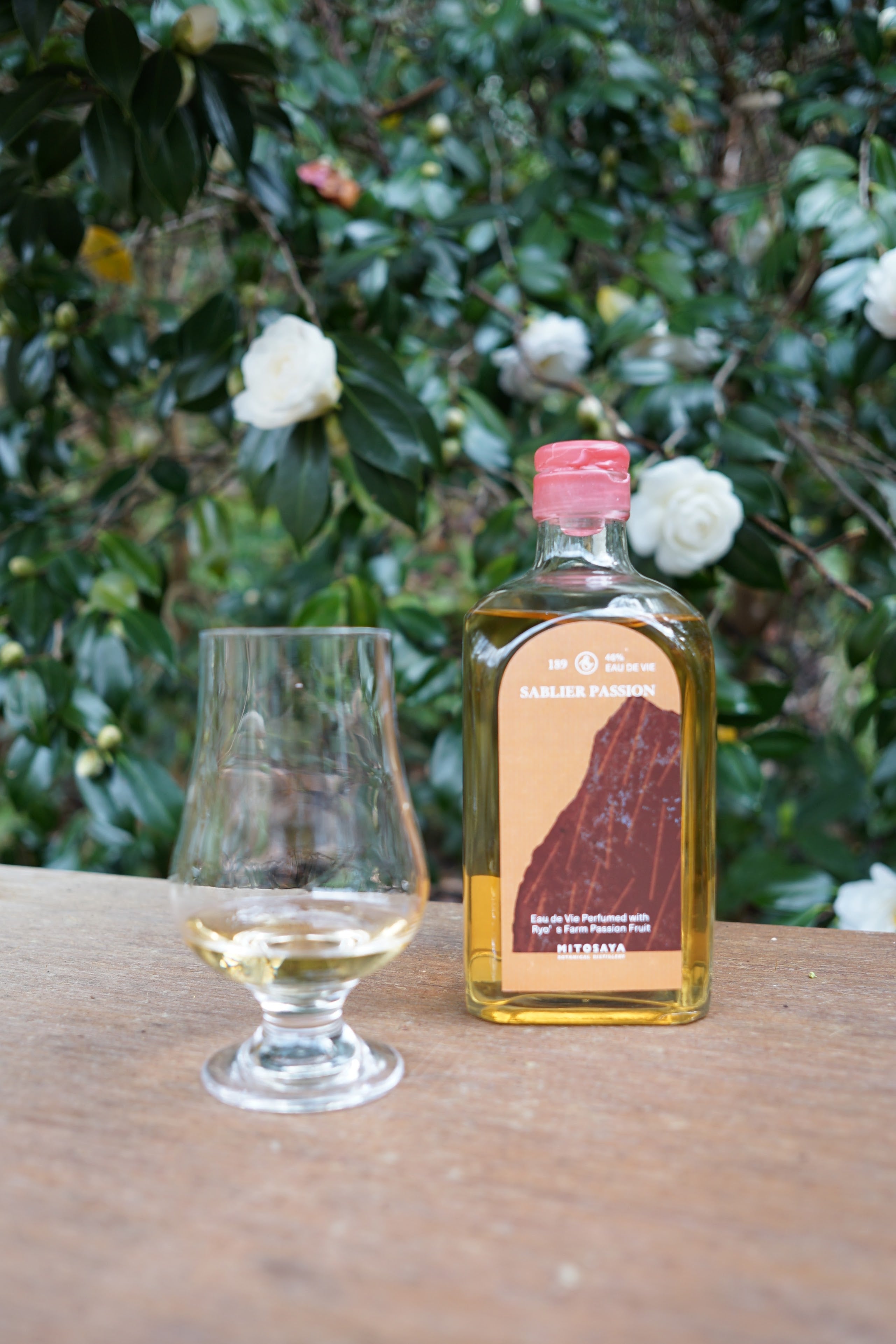 蒸留した原酒をステンレスタンクで熟成し、南房総のRyo’s Farmで育った芳醇なパッションフルーツのピールを浸漬しました。