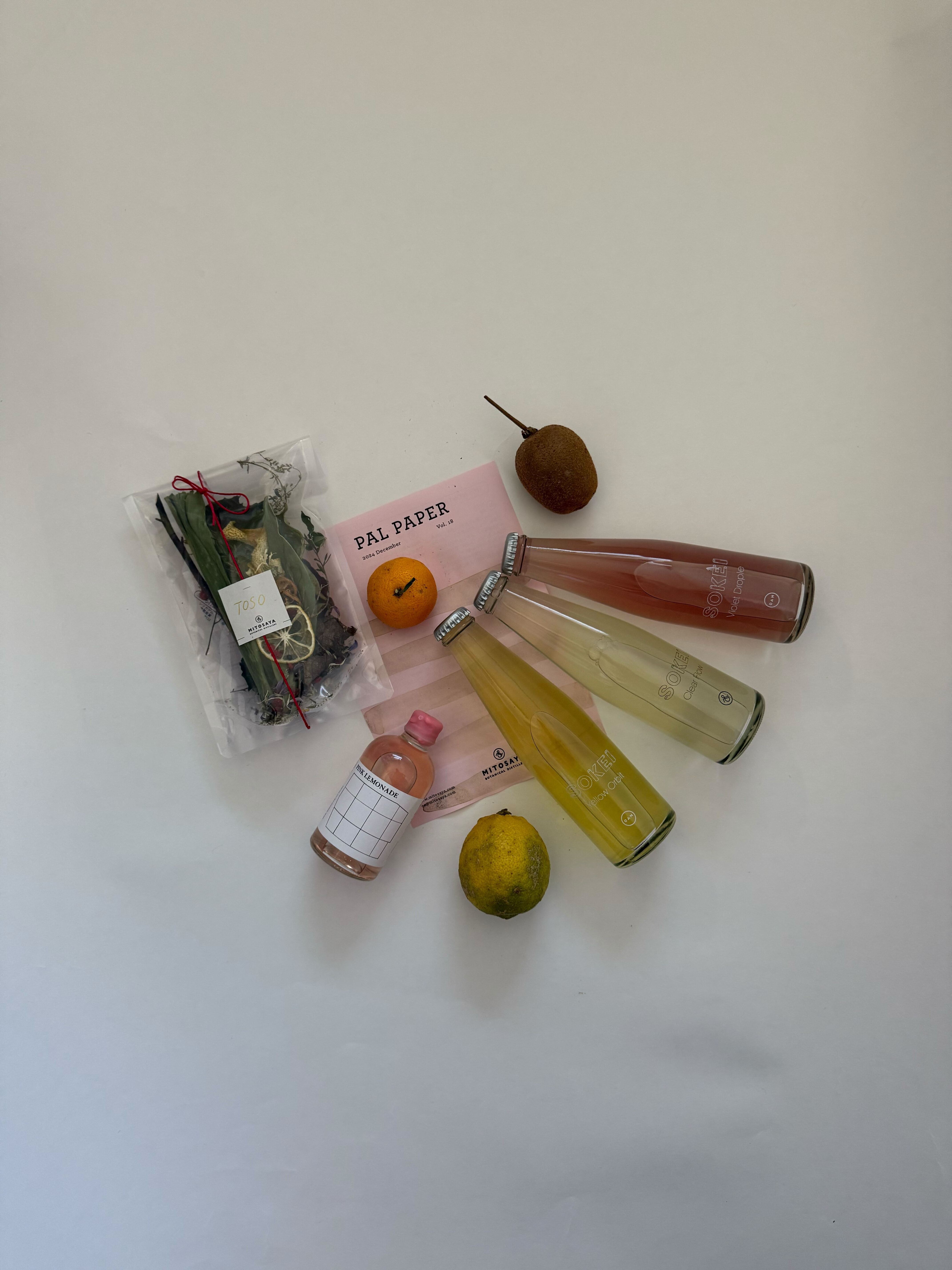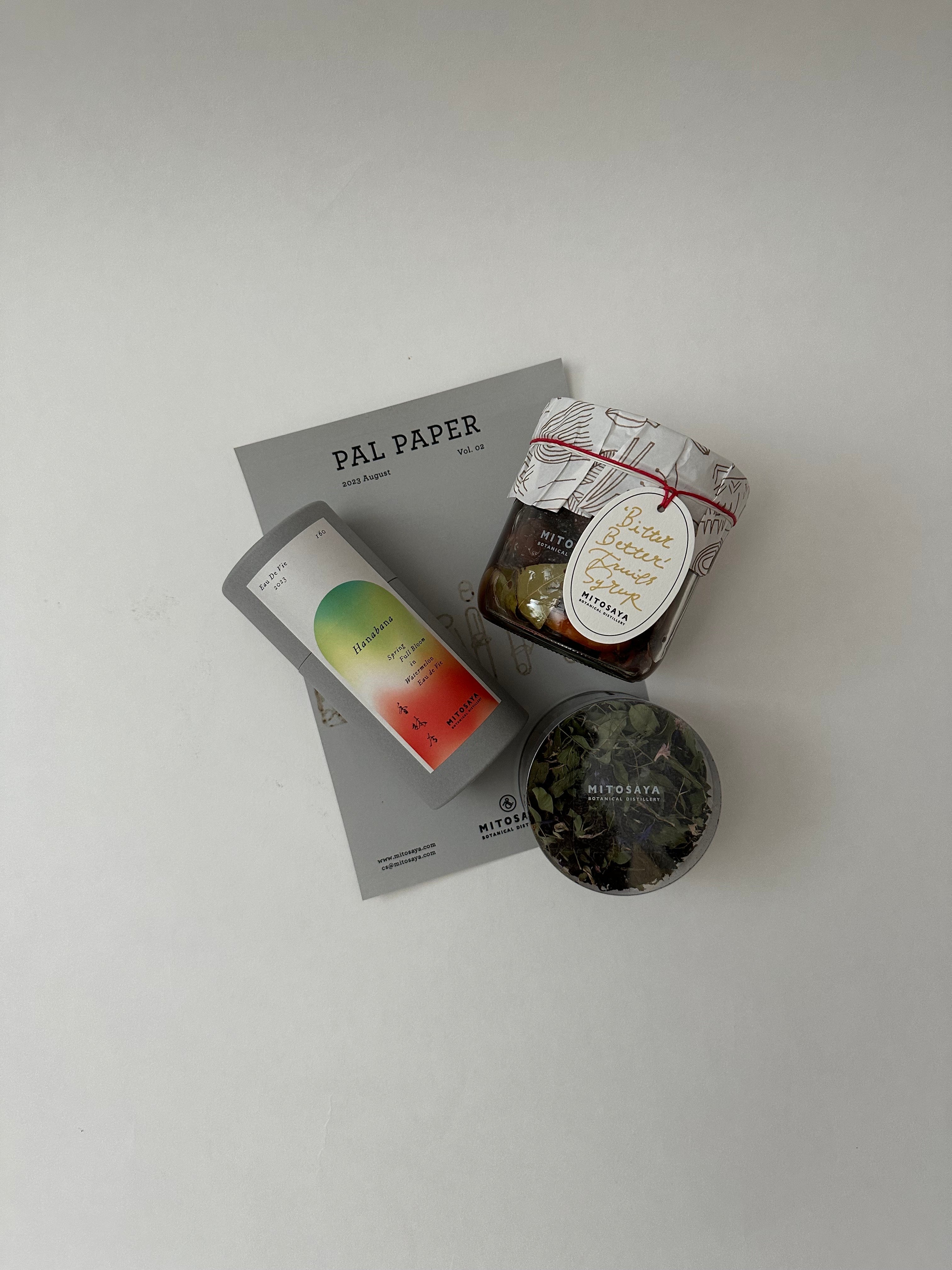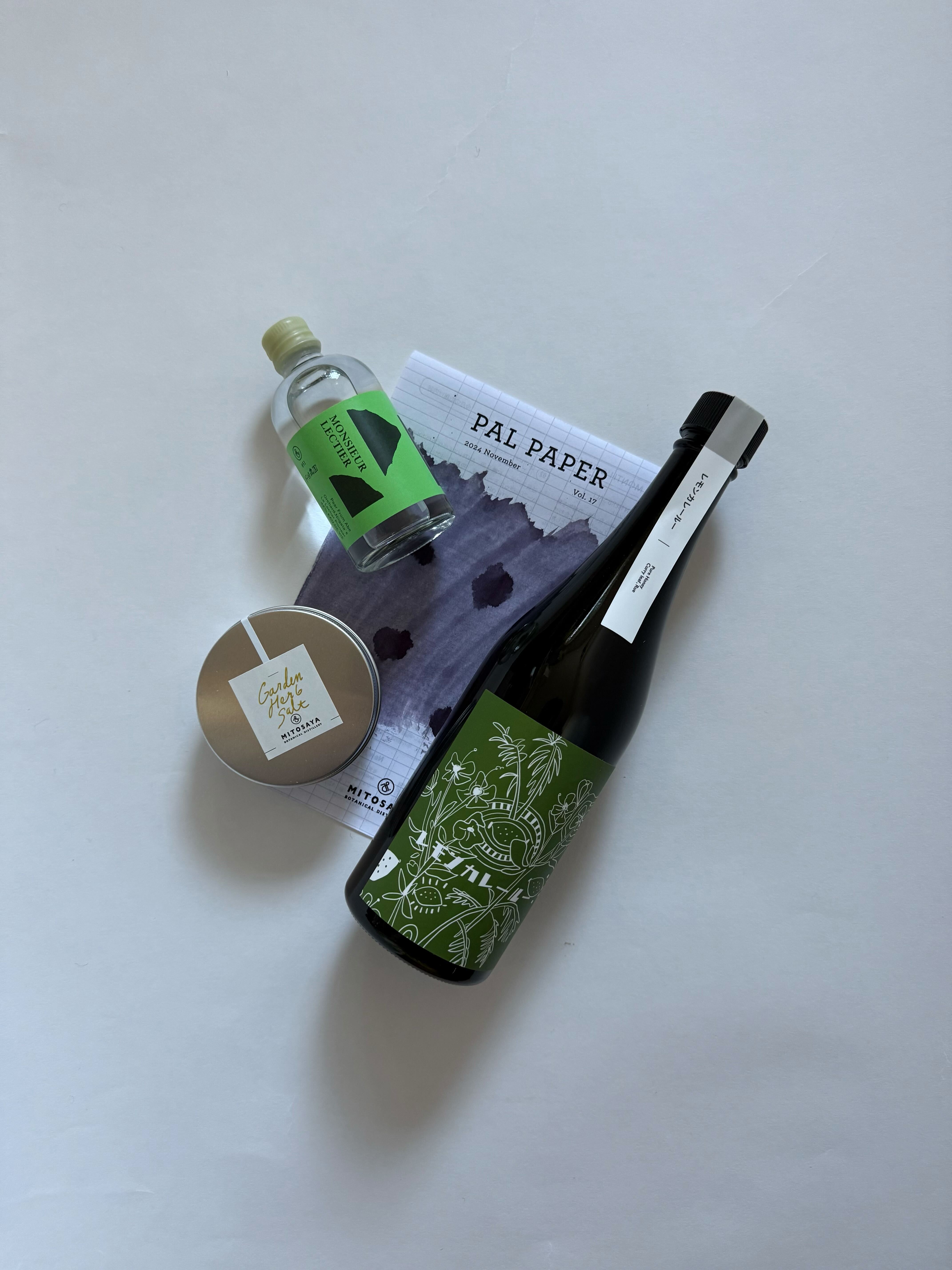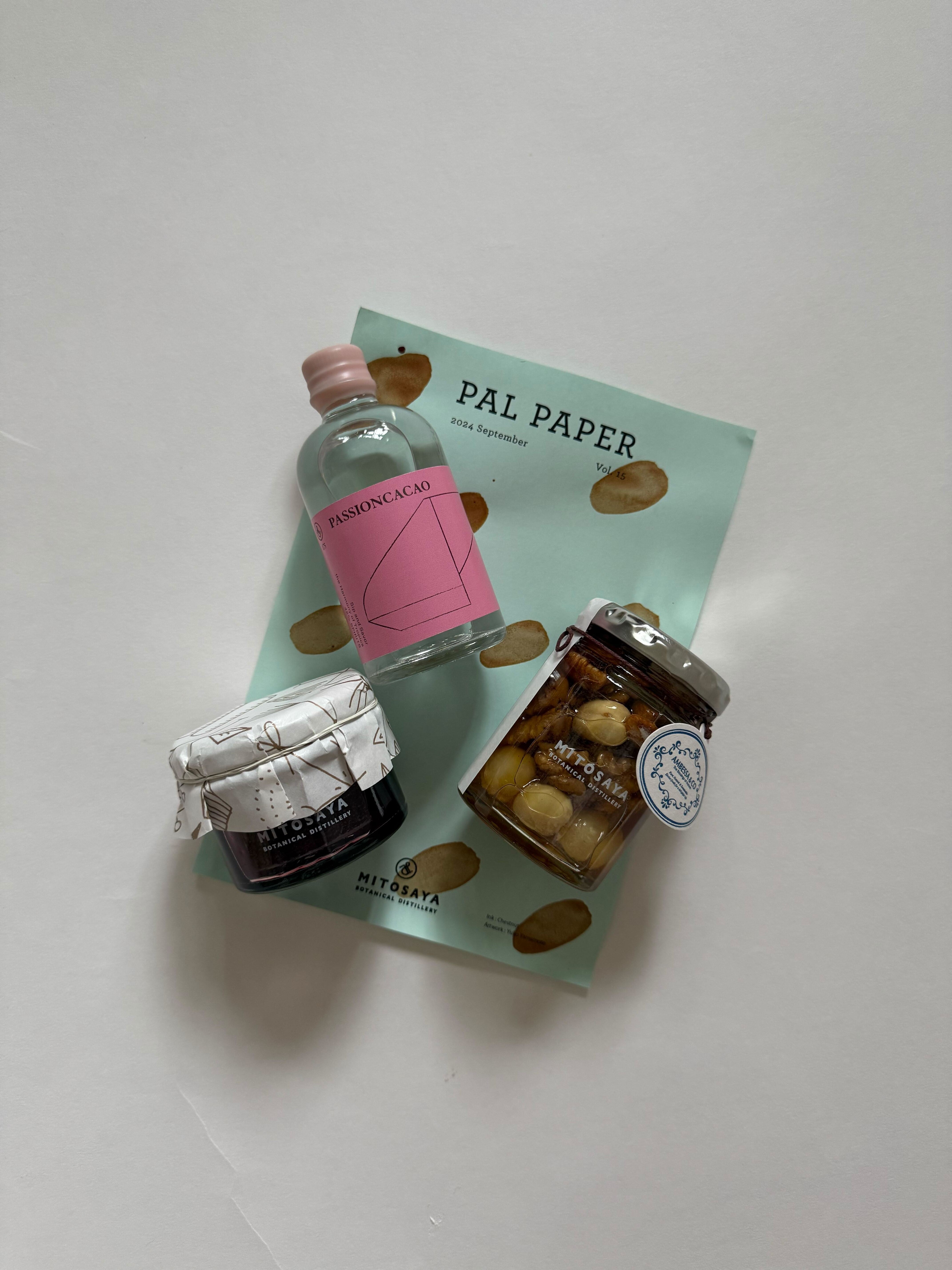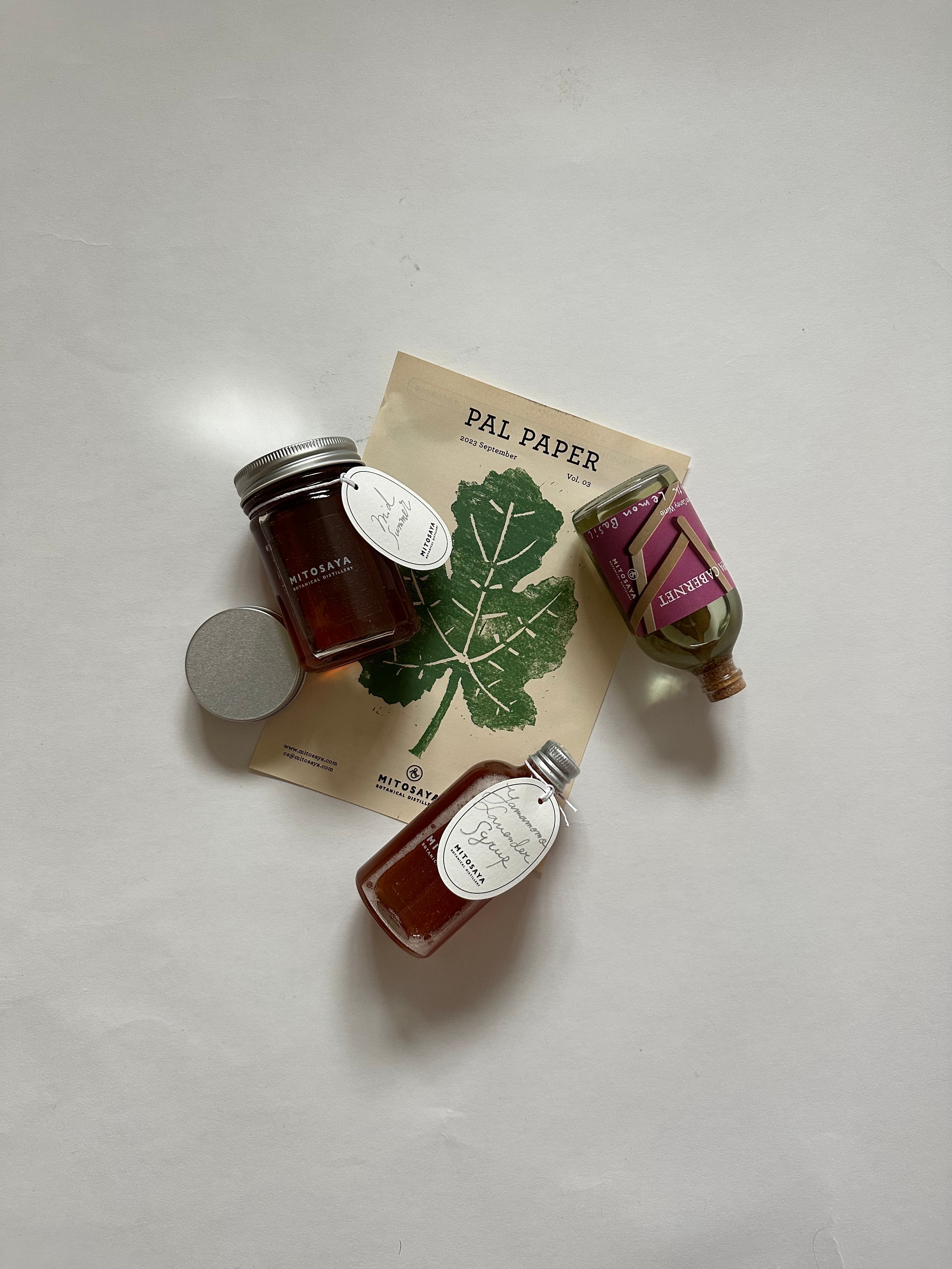 mitosaya pals is an exclusive program limited to 100 members who support the activities of mitosaya. As a member, you'll receive a monthly set of new distilled spirits and non-alcoholic products, as well as original items and seasonal products received directly from producers.