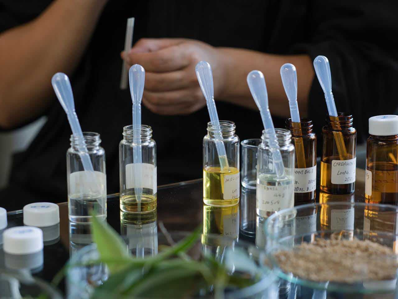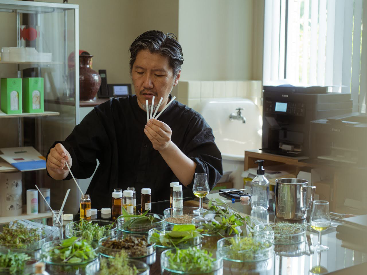 OSAJIとmitosayaによる特別なコラボレーションでは、実際にOSAJI代表の茂田正和さんがmitosayaを訪れ、採れたてのハーブを仕込んでいく工程に立ち会い、天然の精油を用いて「PASTICHE」の香りを再現し、ヘア&ボディケアアイテムに昇華させました。