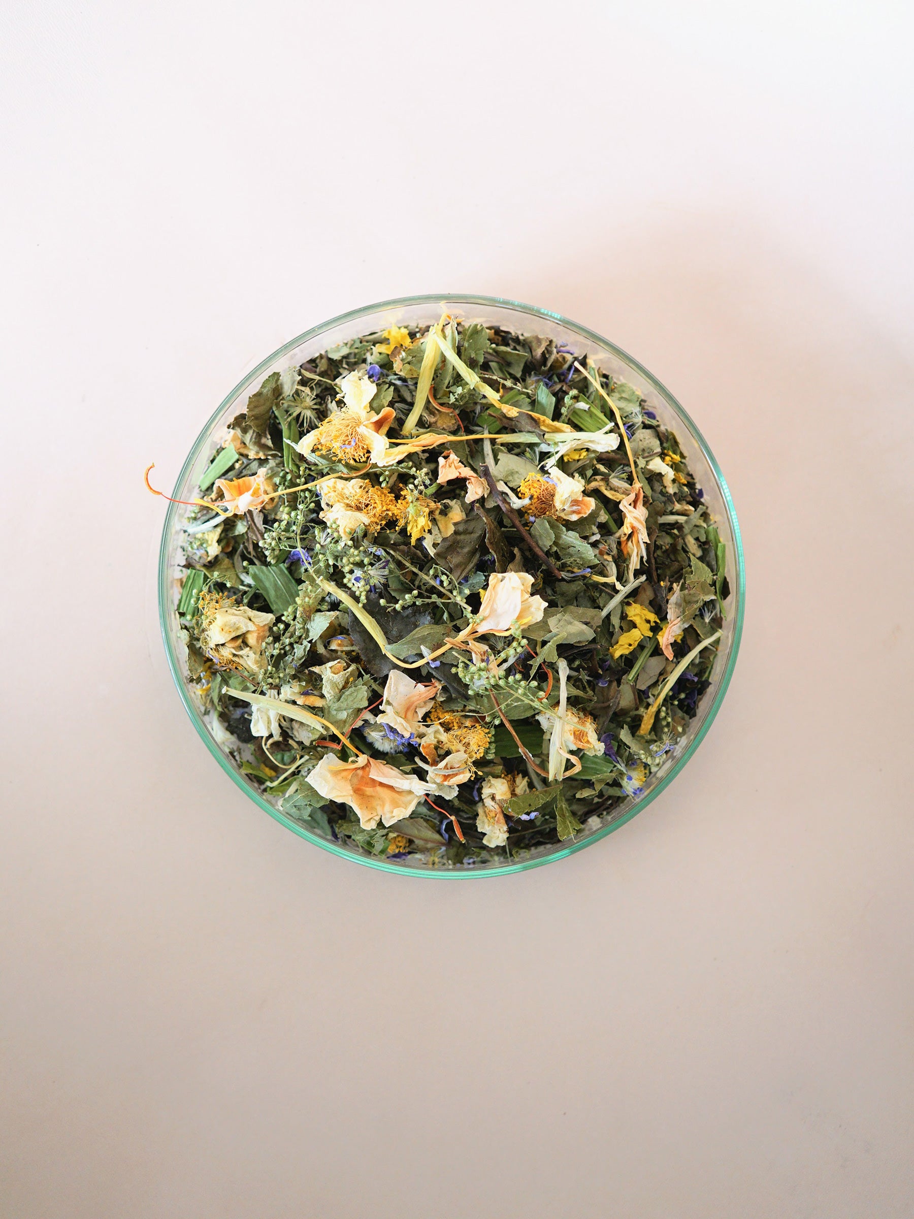 原材料:白茶(TEHANDEL/大磯)、茶の花、サルトリイバラ、カワラヨモギ、生姜の花、葉、萩、レンギョウ、シオン、春ウコン、レモンバジル