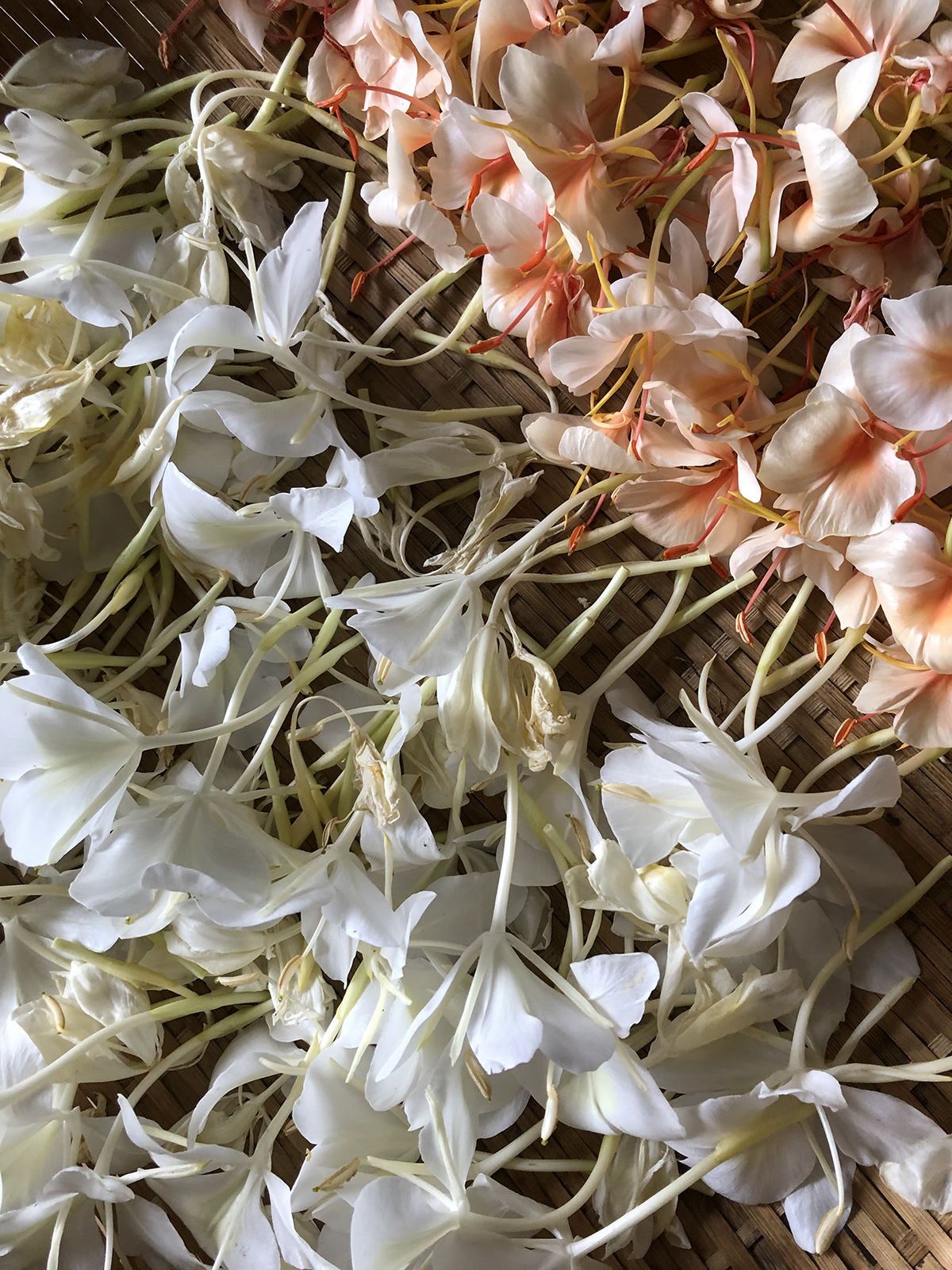 In this gorgeous flower tea, I add ginger flowers and leaves, and a little turmeric, to create a blend that you can enjoy as a warming sensation when you drink it.