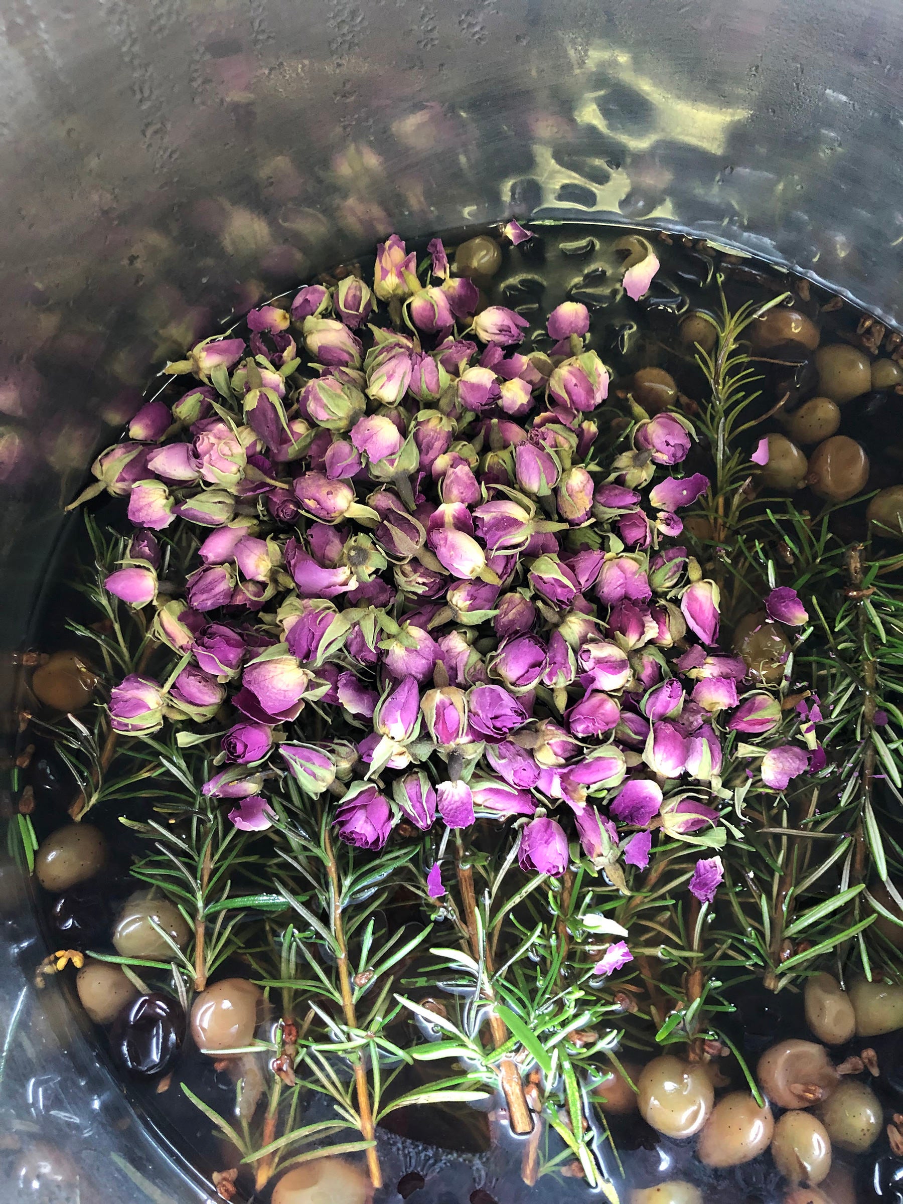 I enjoy making syrups with a combination of herbs and flowers, but I don't think there is any syrup as beautiful in its working process as this syrup. Rosemary's name means ""drop of the sea"" in Latin, where rose = drop and marie = sea. Although it has no constituent relationship with rose flowers, it is in very good harmony with them in this syrup, creating the aroma and flavor.