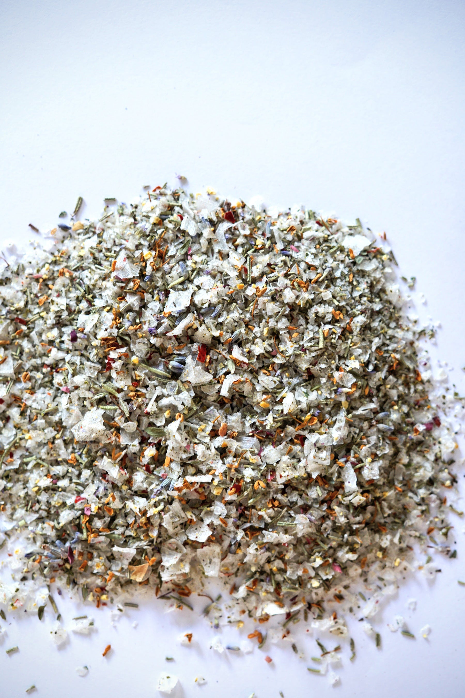 Ingredients: Salt (from France), bay leaf, oregano, lavender, thyme, anise hyssop, fennel, gold mignon, silver mignon, rose, orange, chili pepper