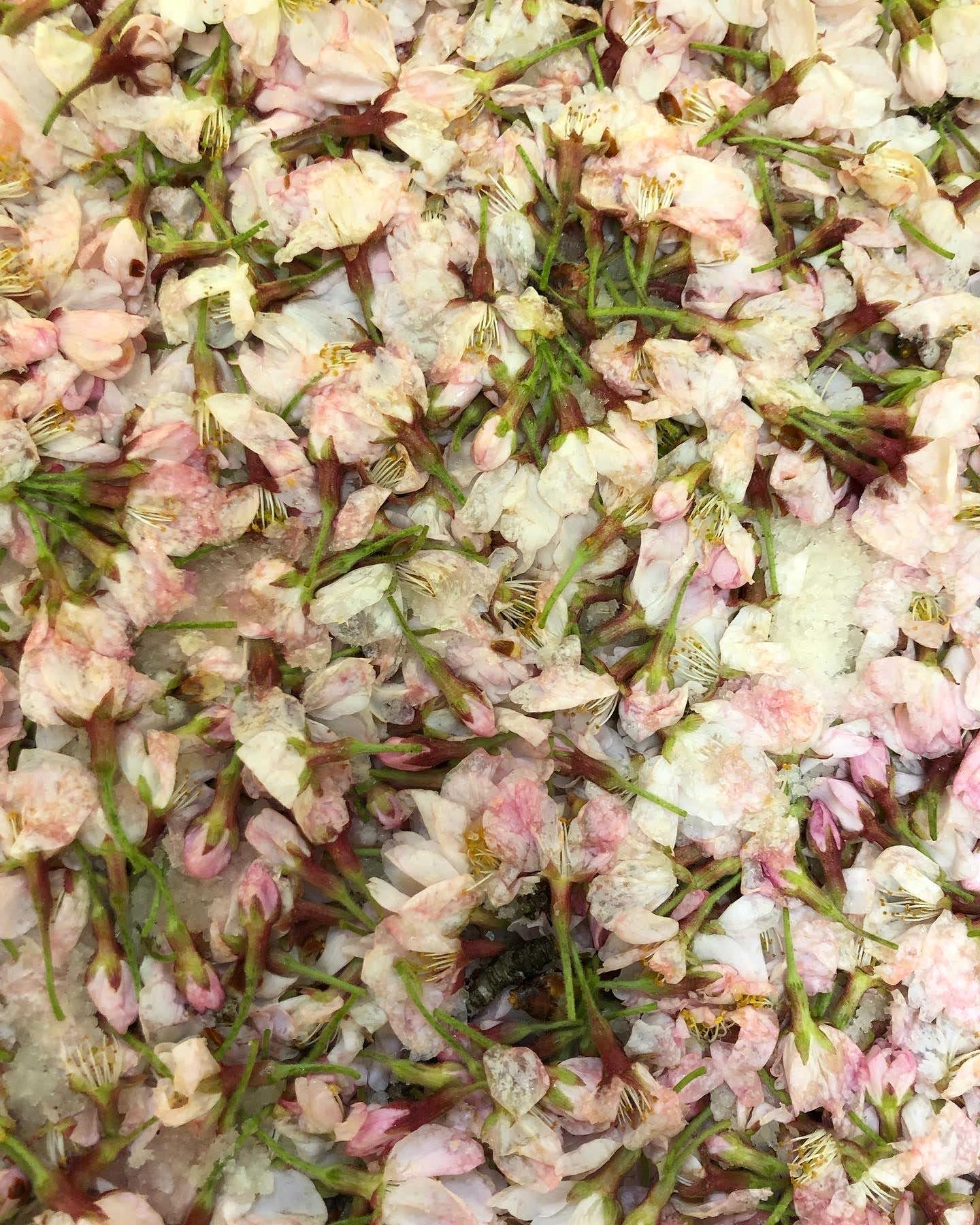 Pesticide-free navel oranges from Eguchi Farm in Kumamoto. The fruitiness and aroma were still present in the mash after distillation. Homemade ume vinegar and sakura vinegar were combined to make a refreshing dressing.