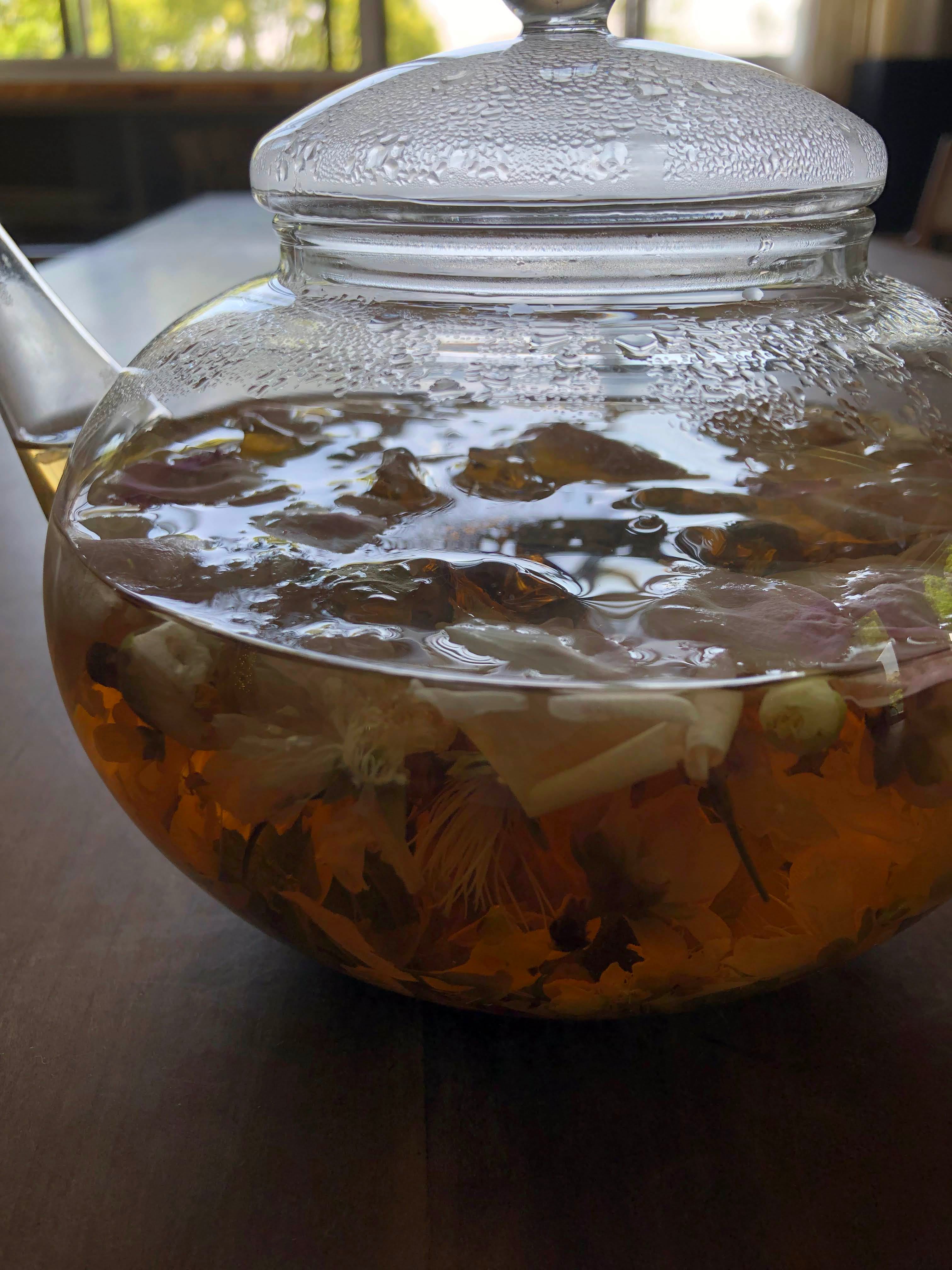 ガラスのポットなどに入れてお湯を注いでいただくと、工芸茶にも似た美しい見た目にもうれしいお茶です。