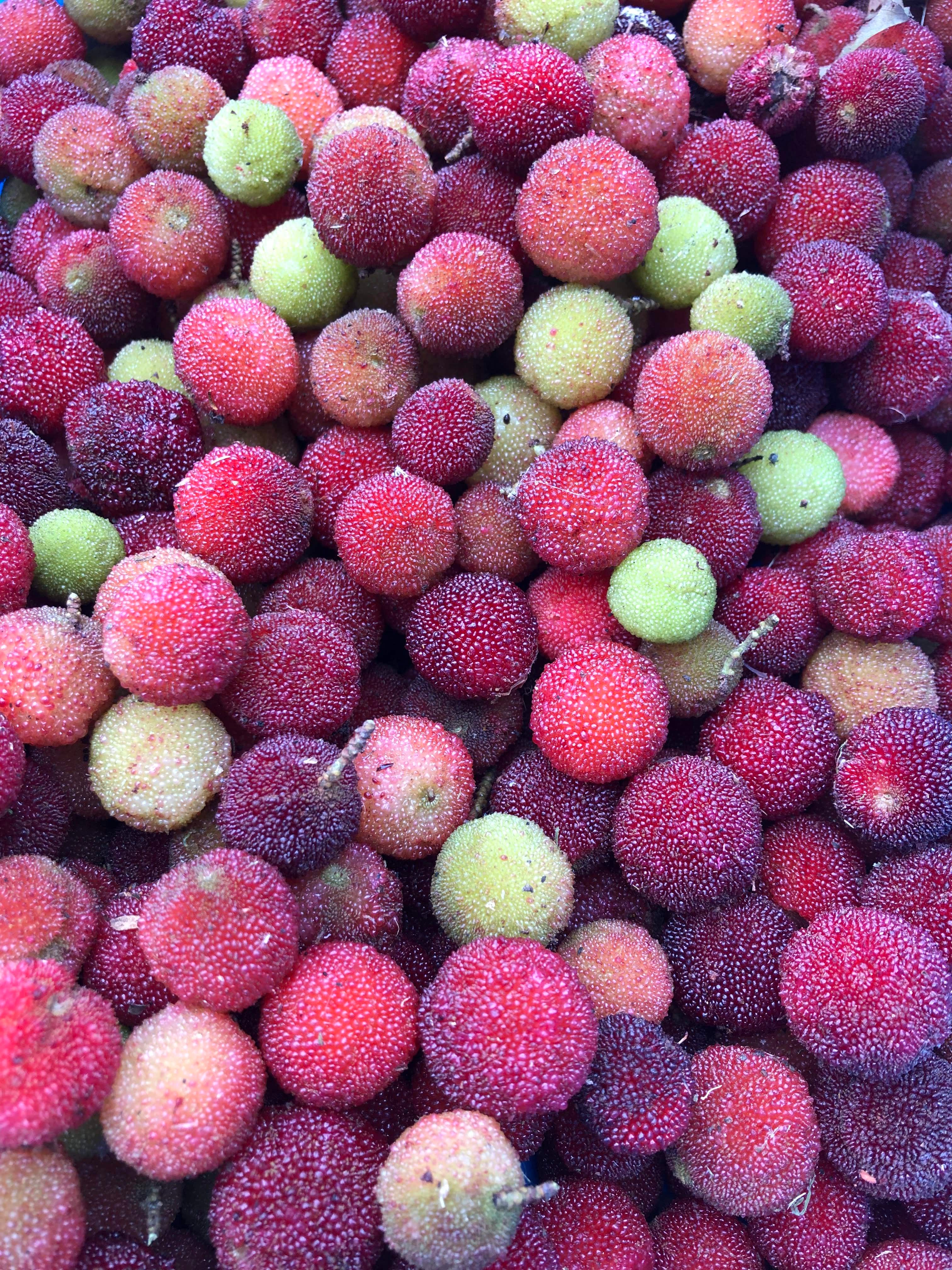 この完熟の梅に、庭で採った山桃の鮮やかなピンク色のシロップでさらっと仕上げます。