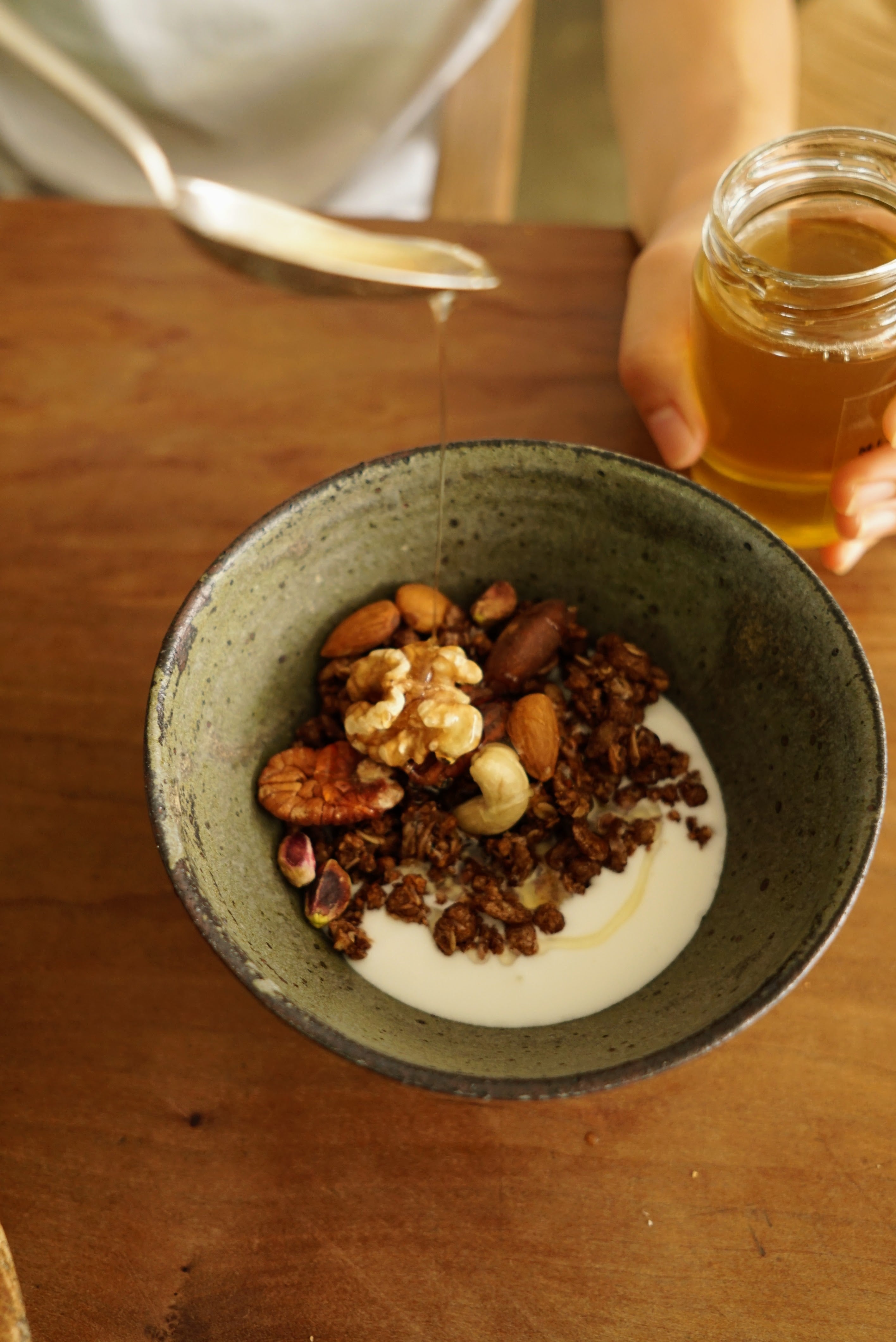 敷地内の植物たちが一斉に花開く春から初夏にかけては、ミツバチたちも活発に飛び回り、様々なところで羽音が聞け、姿をみることができます。私たちも地元の養蜂家、朝生さんと共に、慣れない防護服に身を包み、巣箱の検査や、採蜜などの手伝いをしています。