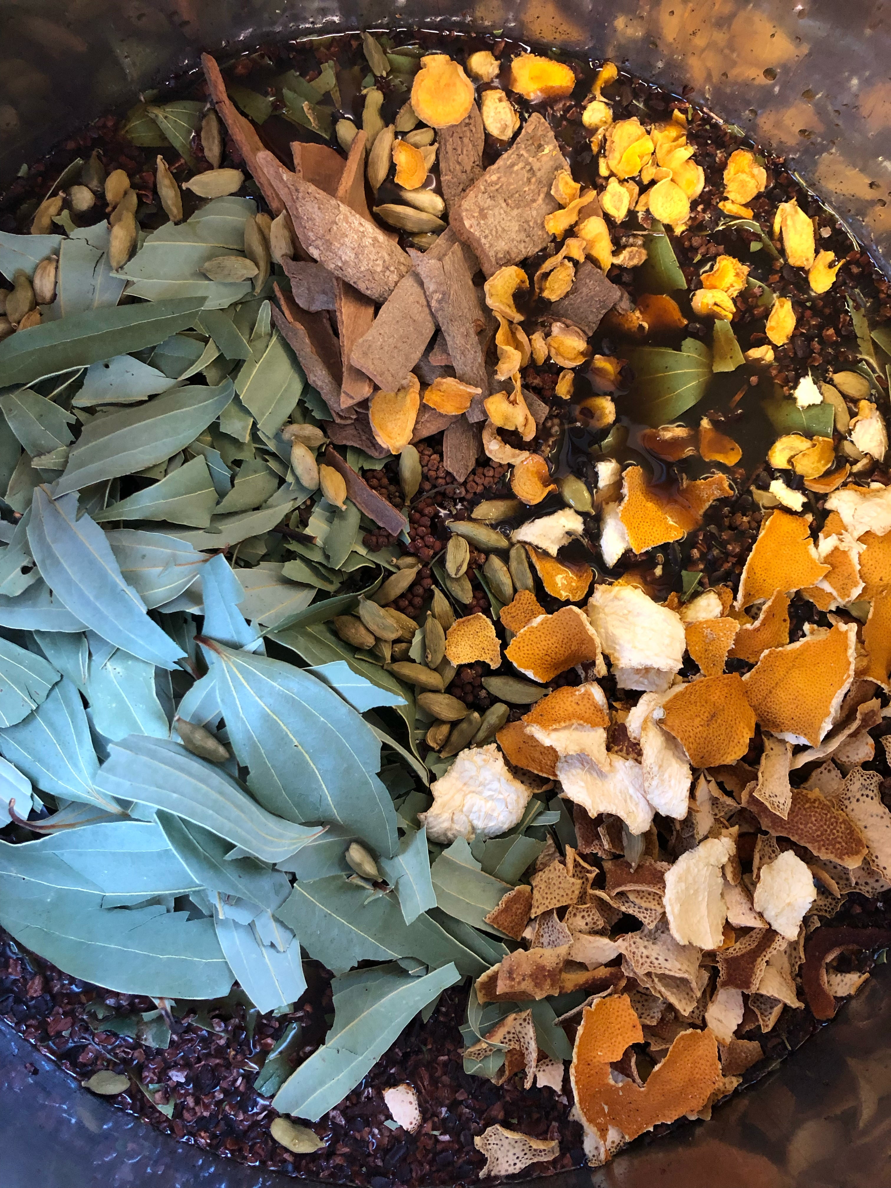 Ingredients:Sugarcane, cinnamon leaf, ginger, cacao nibs, fenugreek, cardamom, turmeric, orange and cactus peel, Orange, Cactus peel